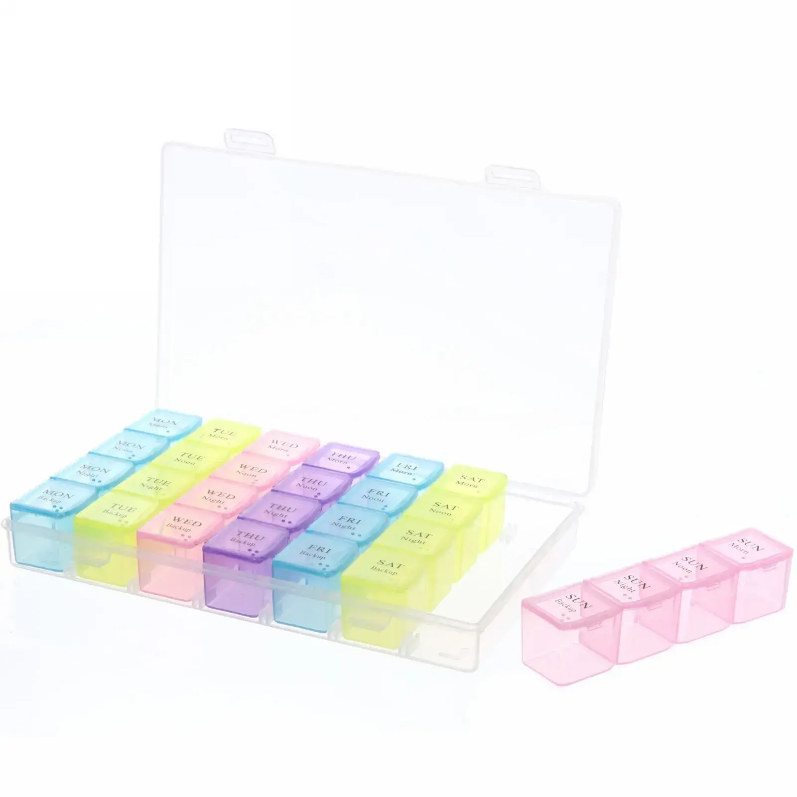 Не забывайте о здоровье с помощью нашего органайзера для таблеток! Этот контейнер с 28 ячейками поможет вам удобно распределить прием лекарств и витаминов на каждый день недели. Благодаря ярким цветам и четкой маркировке, вы всегда будете знать, когда и какие таблетки нужно принять. Удобный и практичный, он станет незаменимым помощником в вашем повседневном уходе за здоровьем.