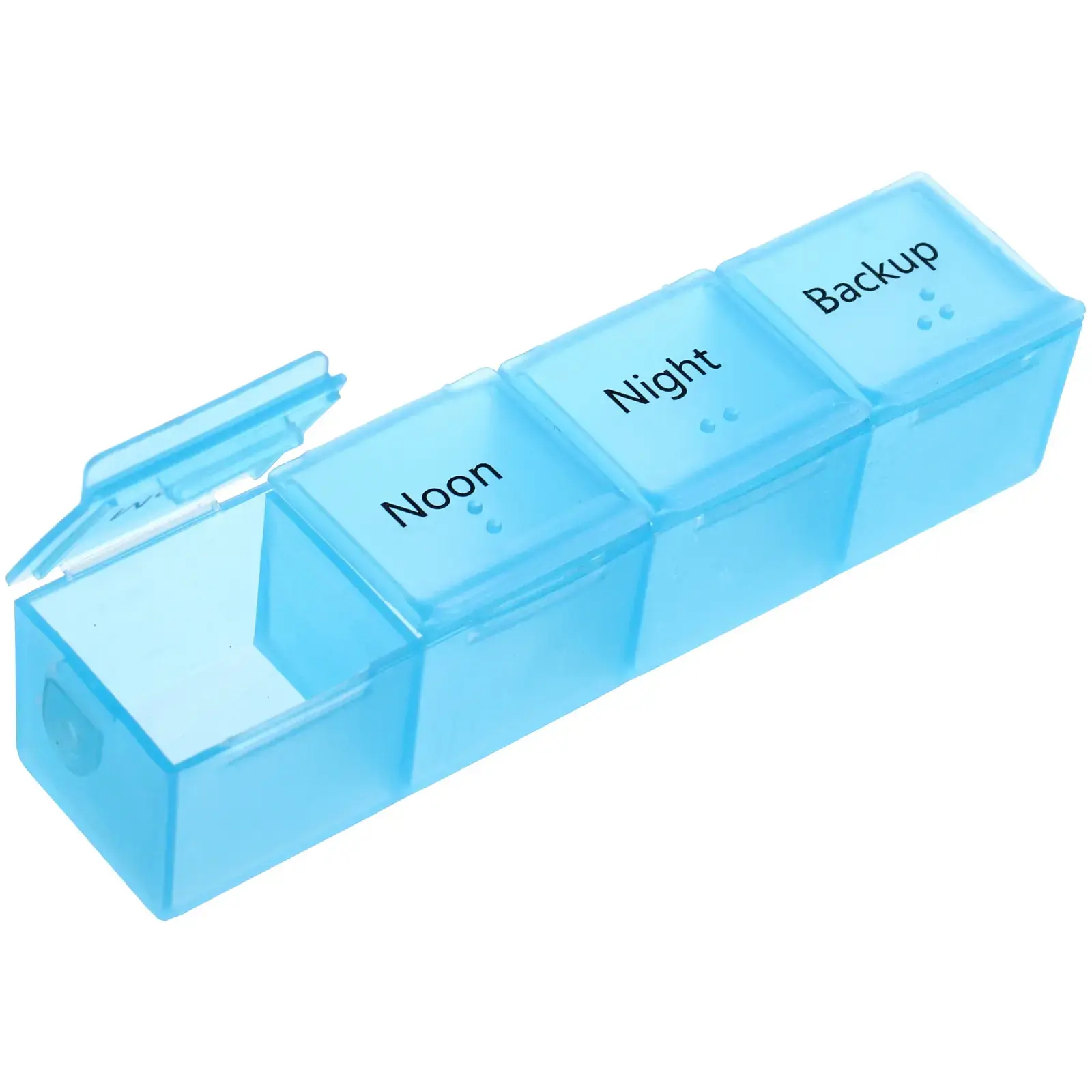 Размеры органайзера составляют 18 см в длину, 10.7 см в ширину и 2.8 см в высоту. Он выполнен из прозрачного и цветного пластика, что позволяет видеть содержимое ячеек. Каждый контейнер имеет крышку, что предотвращает случайное открытие и потерю таблеток. Яркие цвета (голубой, желтый, розовый и пурпурный) делают его не только функциональным, но и стильным аксессуаром для вашего дома.