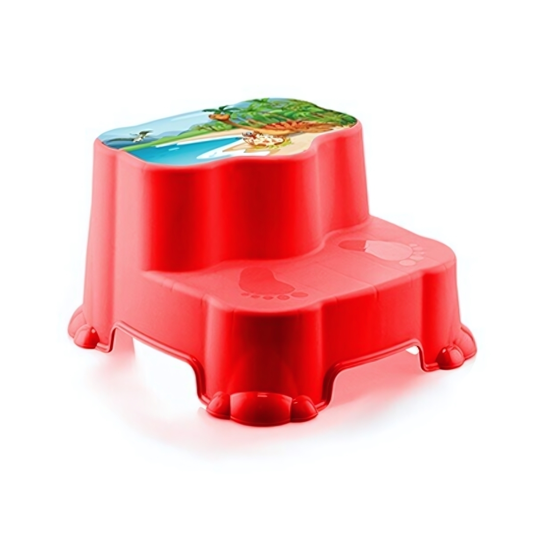 Верхняя ступень украшена привлекательным пейзажем с пляжем и пальмами, что делает процесс использования еще более приятным для ребенка. Яркий красный цвет добавляет жизнерадостности интерьеру.