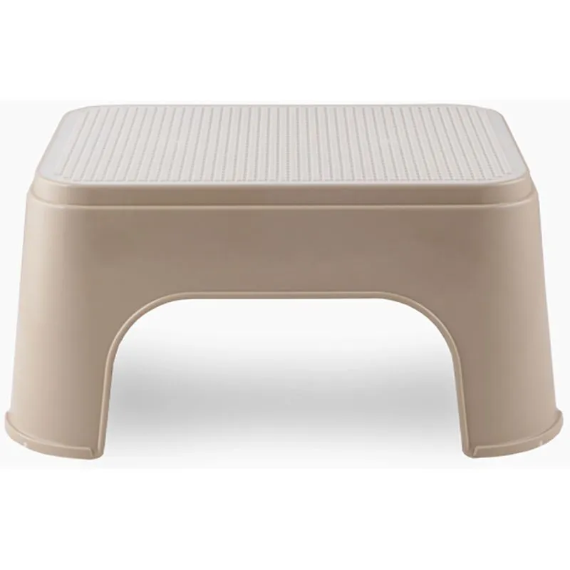 Табурет выполнен из прочного пластика в светло-бежевом цвете, который не выгорает на солнце и не маркий. Цельная форма с технологическим вырезом в нижней части обеспечивает дополнительную устойчивость и делает изделие более лёгким. Рифлёная текстура верхней панели не только функциональна, но и придаёт изделию современный вид. Благодаря компактным размерам табурет легко убрать под кровать или в шкаф, когда он не нужен.