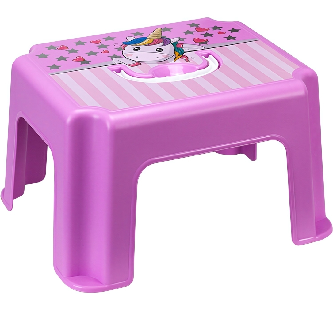 Стильный дизайн с единорогом и сердечками привлечет любого ребенка. Табурет отлично подходит как для игр, так и для практических целей - мытья рук, чистки зубов или использования за детским столиком.