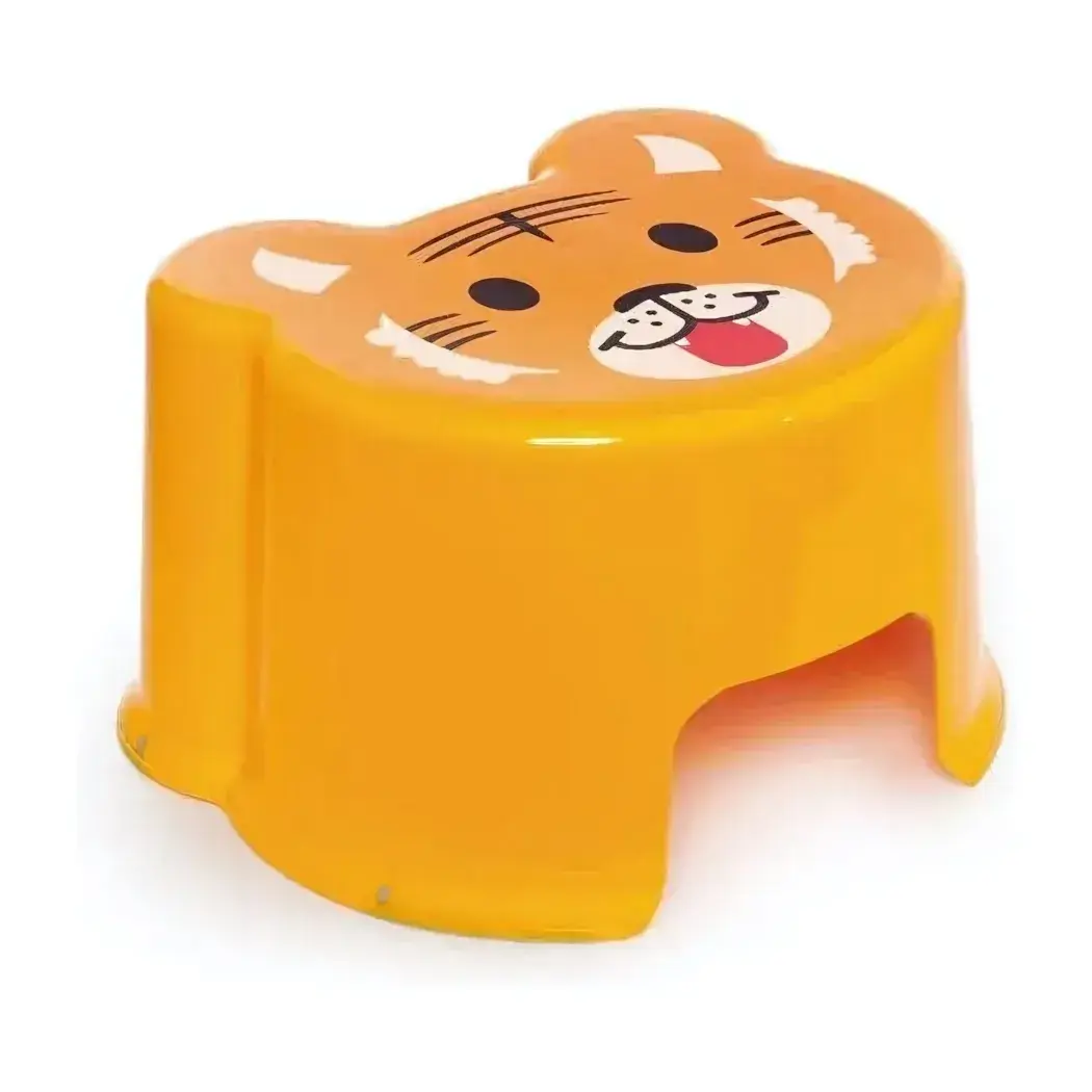 Пластиковая подставка-табурет в форме улыбающегося тигра помогает детям безопасно дотягиваться до раковины или полок. Мягкие закругленные края и устойчивая конструкция обеспечивают комфорт во время использования.