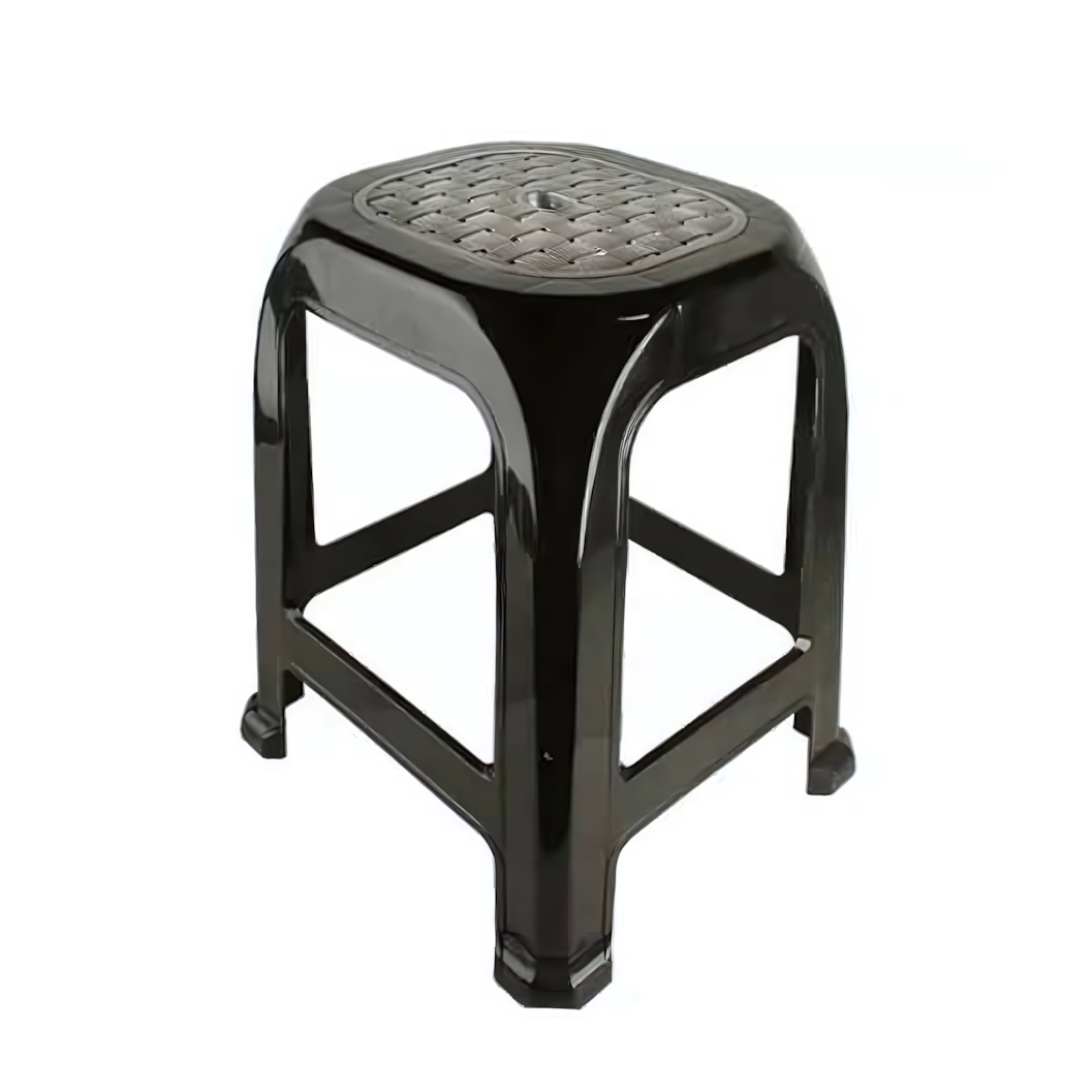 Табурет выполнен из прочного пластика и имеет цельнолитую конструкцию. Четыре устойчивые ножки с дополнительными перекладинами обеспечивают стабильность и снижают риск расшатывания со временем. Ребристые элементы в нижней части повышают устойчивость на различных типах поверхности.