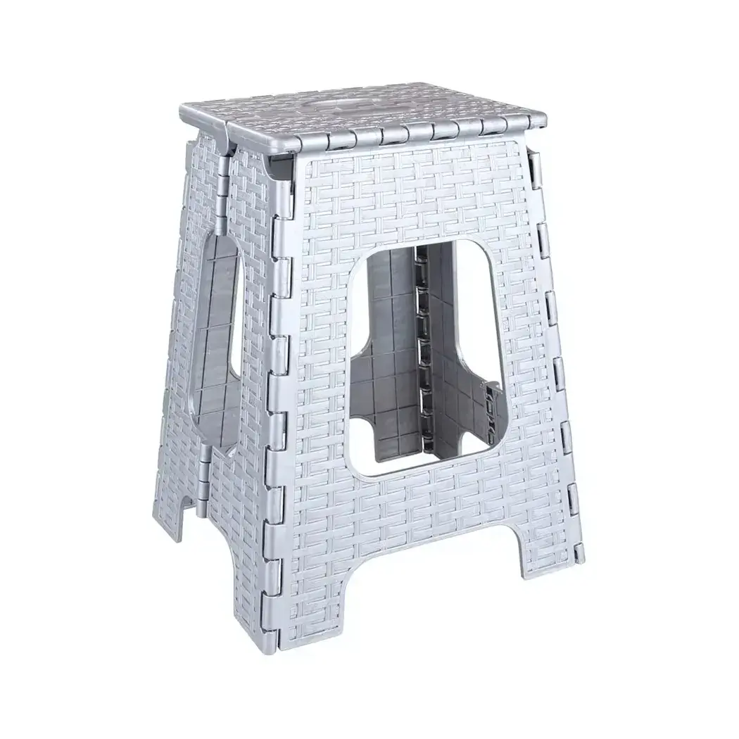 Табурет складной с плетеной текстурой, пластик, серый цвет, 50х60см, устойчивая конструкция