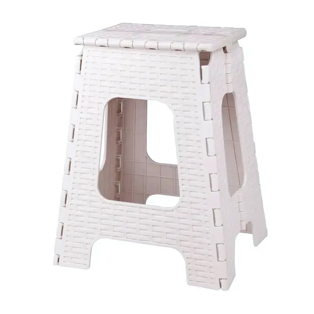 Табурет складной «Плетенка» большой, пластик, бежевый, компактное хранение