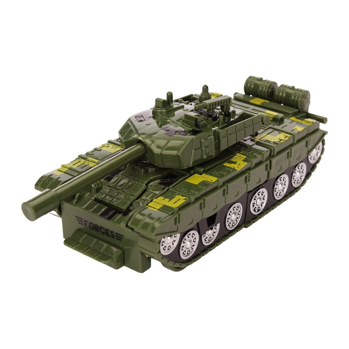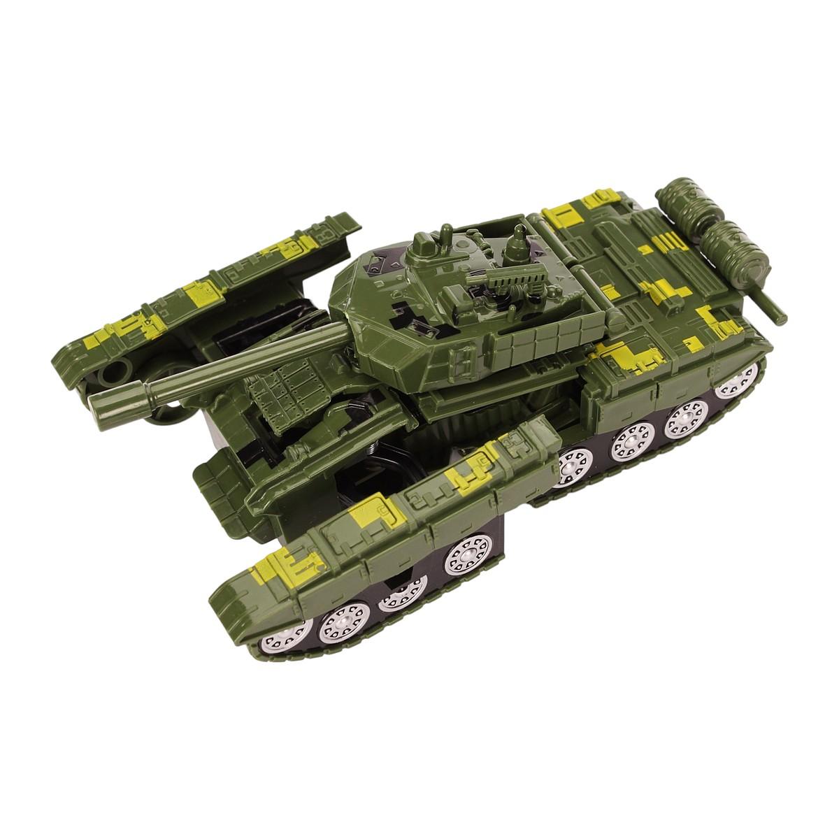 Размер упаковки: примерно 17×6.5×6 см, материал: пластик, цвет: зеленый с желтыми элементами. Модель имеет выразительные детали, имитирующие боевую технику, и подходит для активных игр в игровой комнате или на улице. Танк легко очищается и выдерживает интенсивную эксплуатацию, что делает его долговечным и практичным приобретением для ребенка.