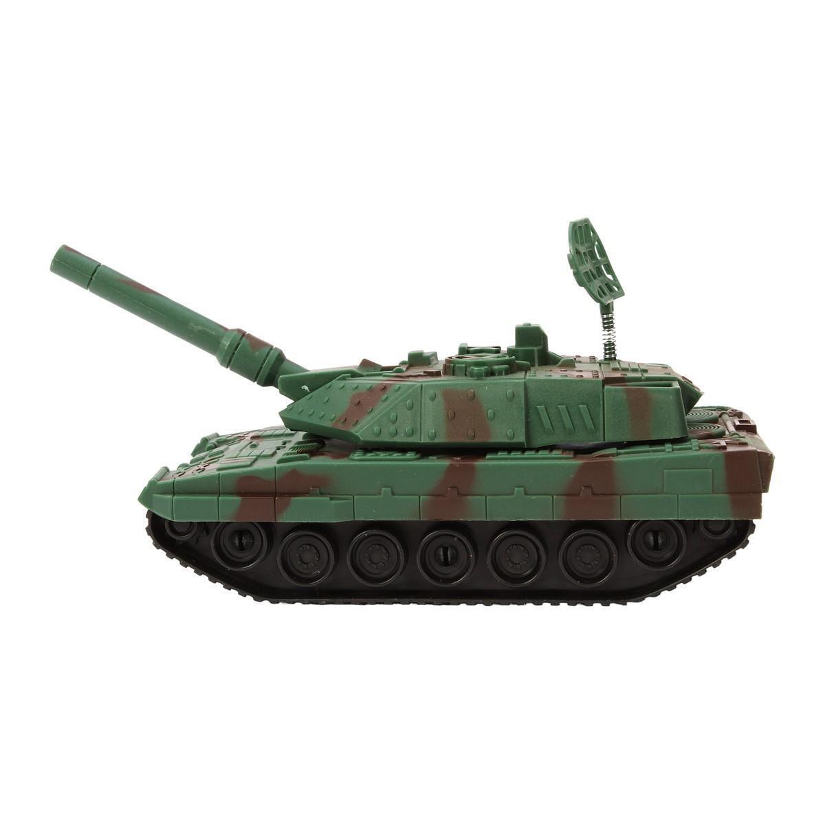 Этот игрушечный танк станет отличным подарком для вашего ребенка, обеспечивая часы увлекательного и активного времяпрепровождения. Он выполнен из качественного пластика и окрашен в зеленый цвет с камуфляжными элементами, что придаёт ему реалистичный вид. Инерционный механизм позволяет танку двигаться самостоятельно, что добавляет элемент динамики в игру.