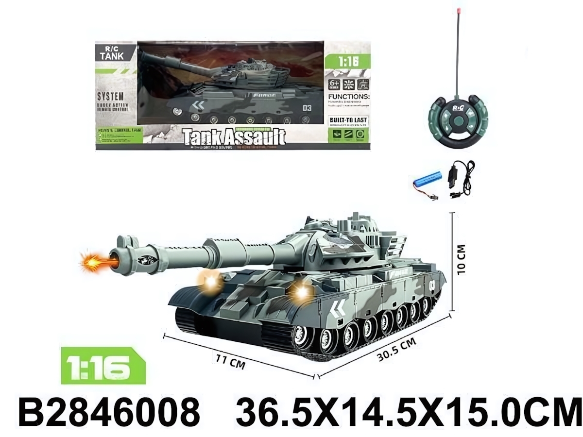 Танк на радиоуправлении «Tank Assault» 1:16, движение вперед/назад, повороты, USB-зарядка, пластик