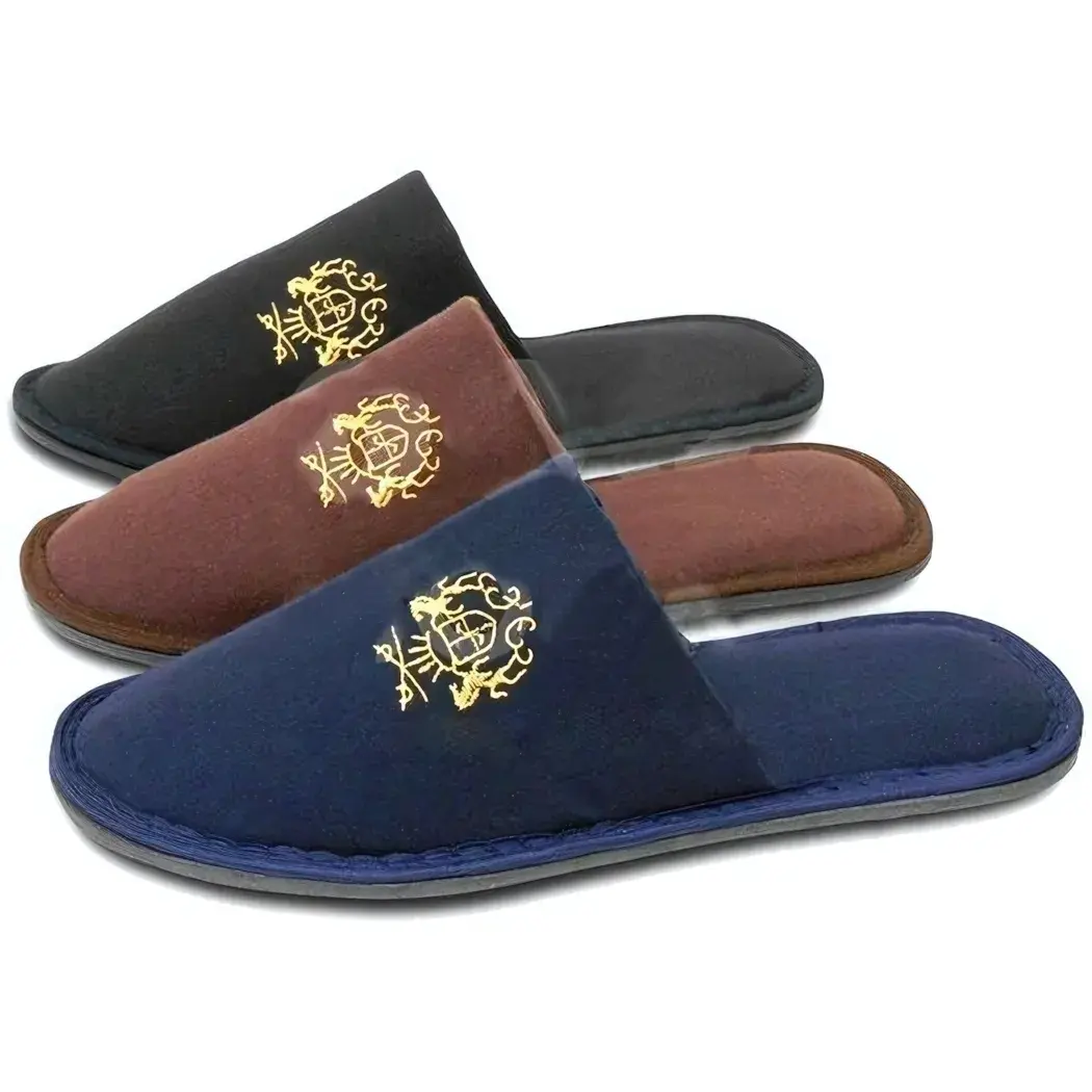 Выбирая тапочки «Классика с гербом», вы получаете не только стильный аксессуар, но и высокое качество. Верх тапочек выполнен из трикотажа, а подкладка из бязи, что обеспечивает отличную воздухопроницаемость и комфорт. Золотистая вышивка добавляет элегантности, а разнообразие цветов (черный, коричневый и темно-синий) позволяет выбрать идеальный вариант для любого стиля.