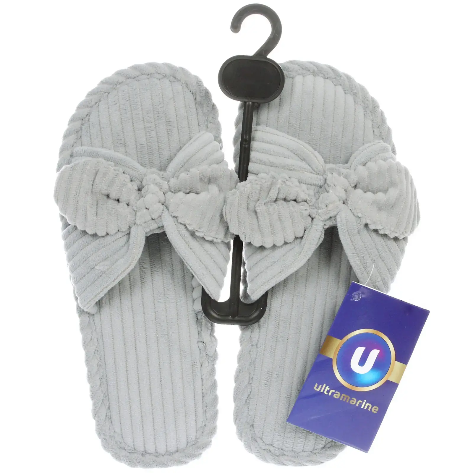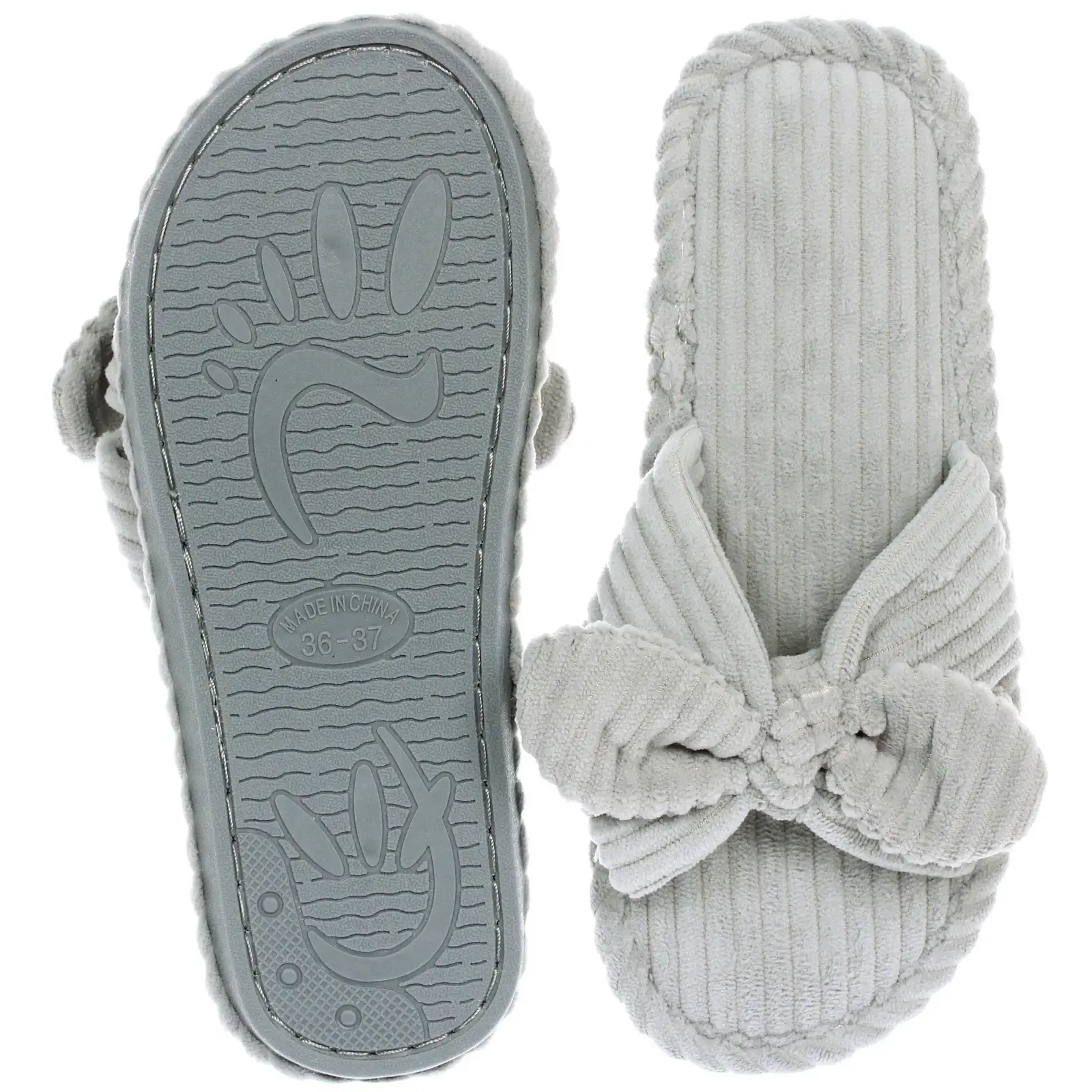 Тапочки домашние "COZY" женские, серо-голубые, р-р 36-37, с бантом