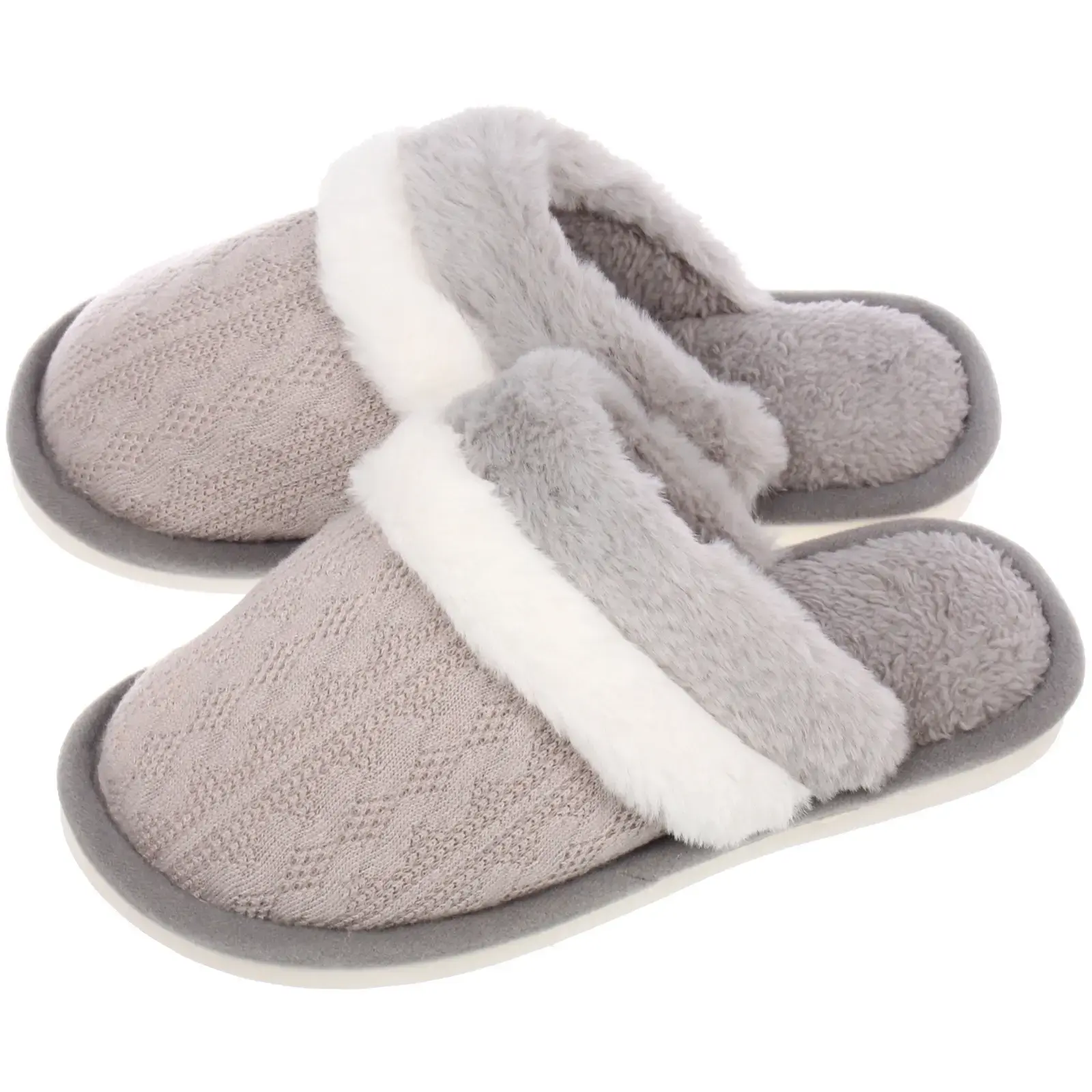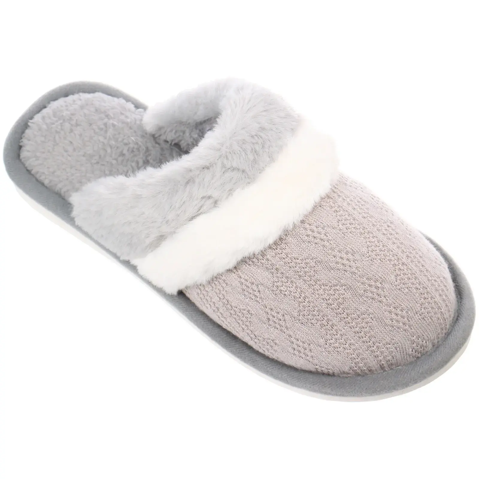 Текстильный верх с вязаной текстурой не только приятен на ощупь, но и обеспечивает хорошую воздухопроницаемость. Подошва из ПВХ гарантирует долговечность и устойчивость на различных поверхностях. Простой дизайн в серых тонах подходит к любому интерьеру и сочетается с любой домашней одеждой.