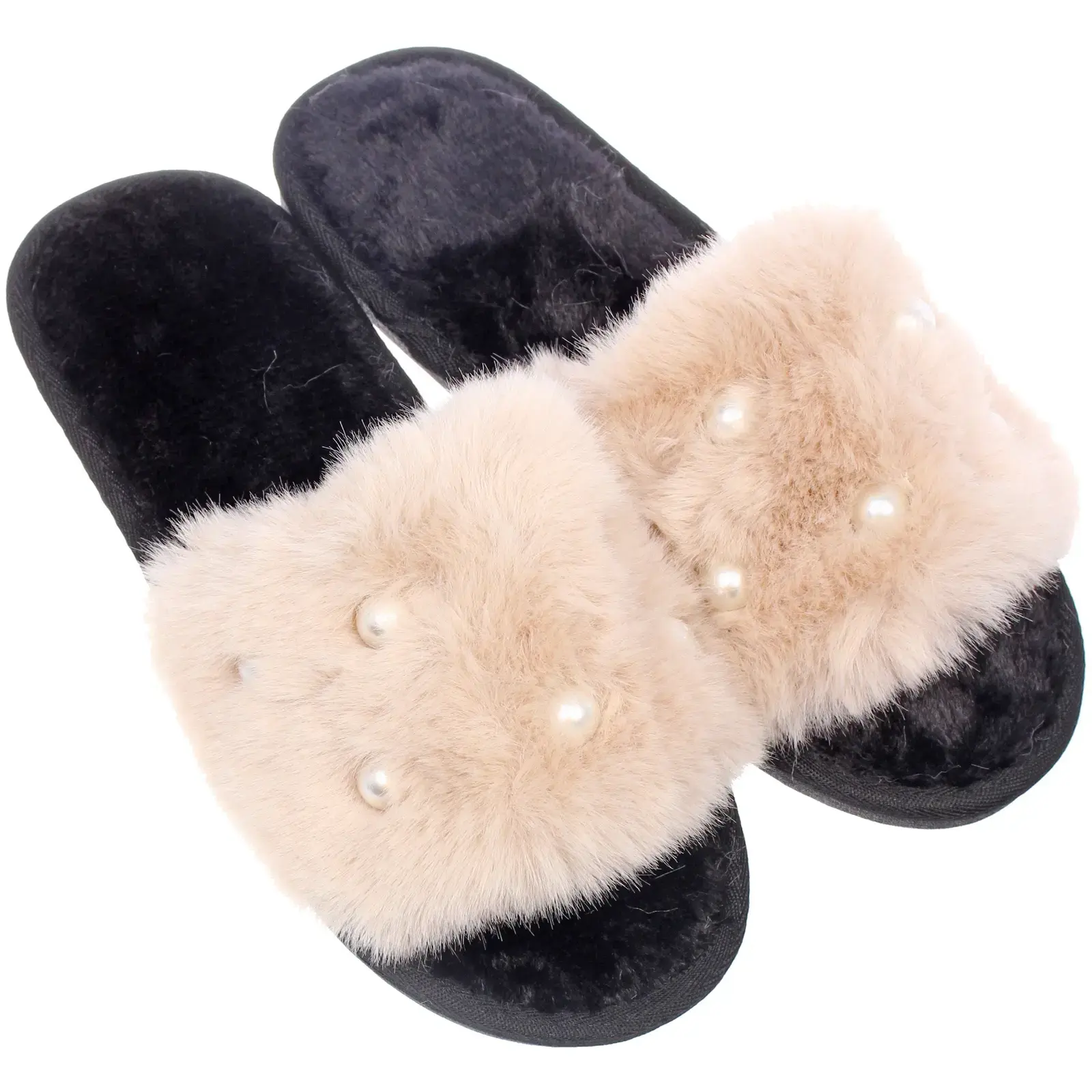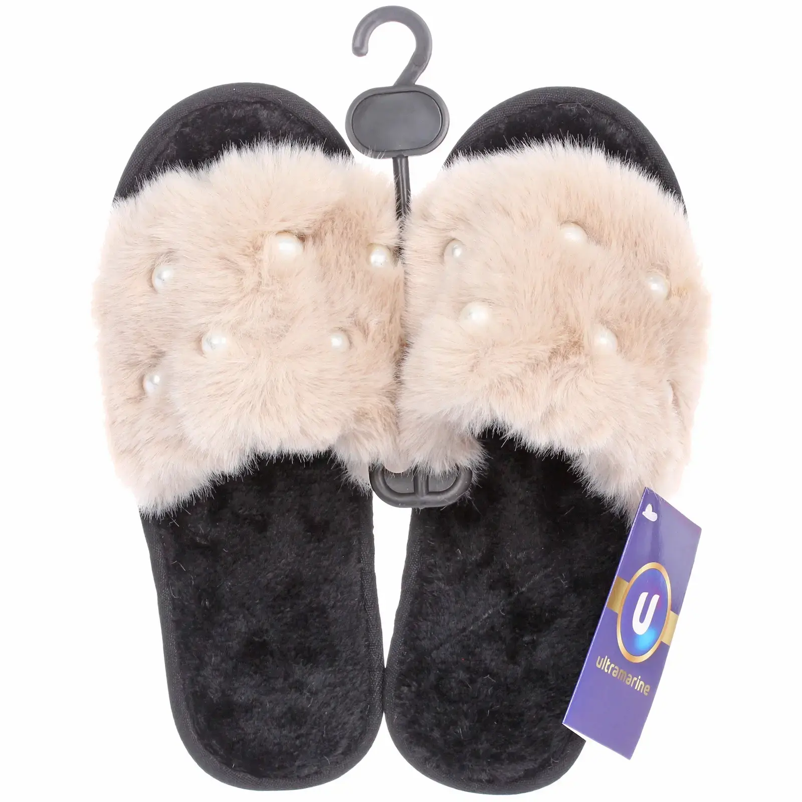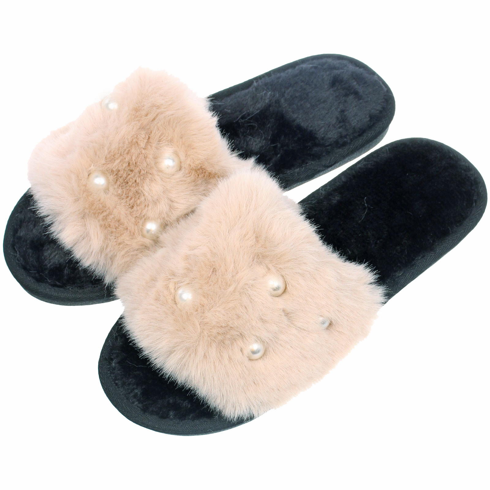 Тапочки домашние «DALIA» с жемчугами, бежевые, размер 40-41, пвх/полиэстер, мягкий мех