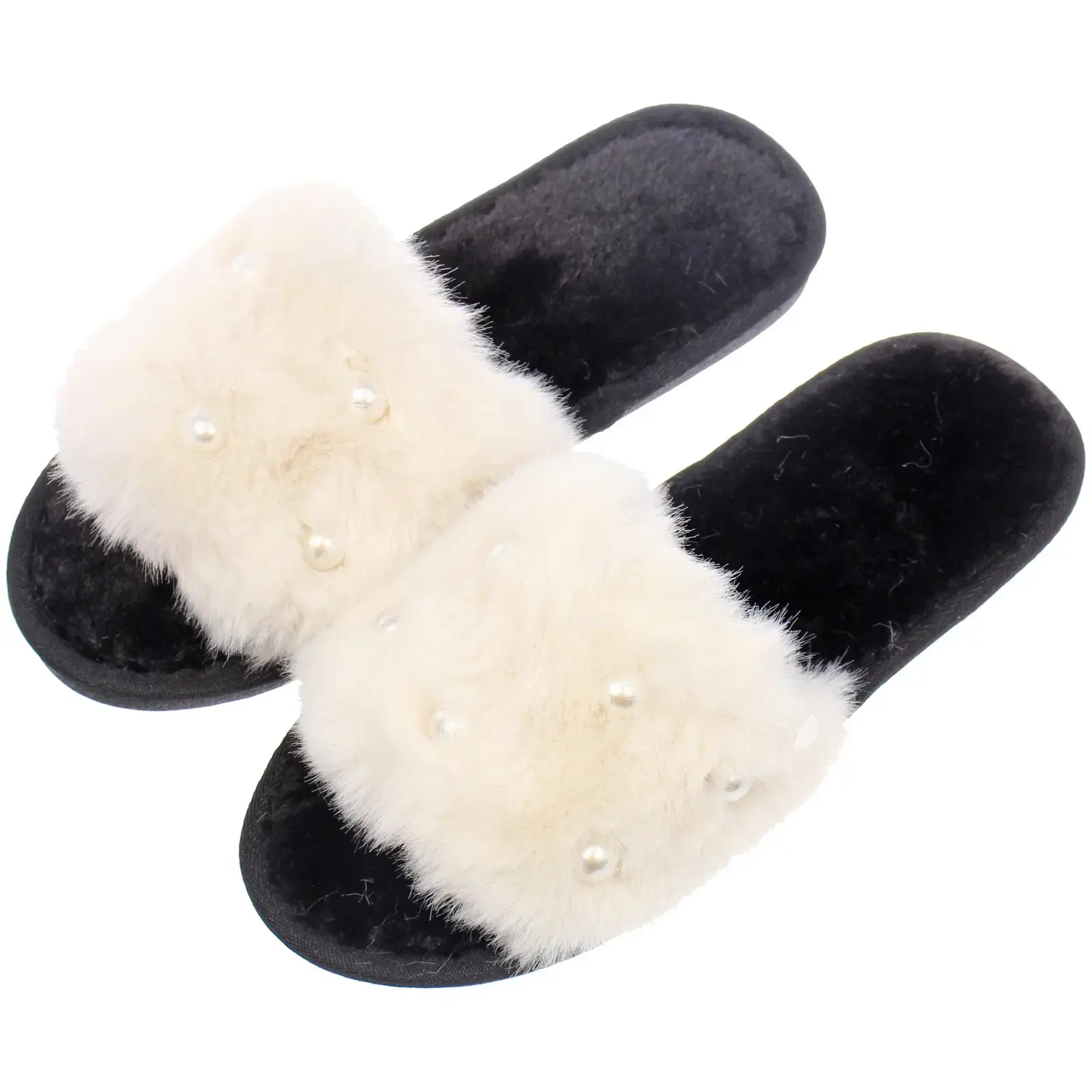 Тапочки домашние «DALIA» с меховым верхом, молочный цвет, размер 36-37, ПВХ-подошва