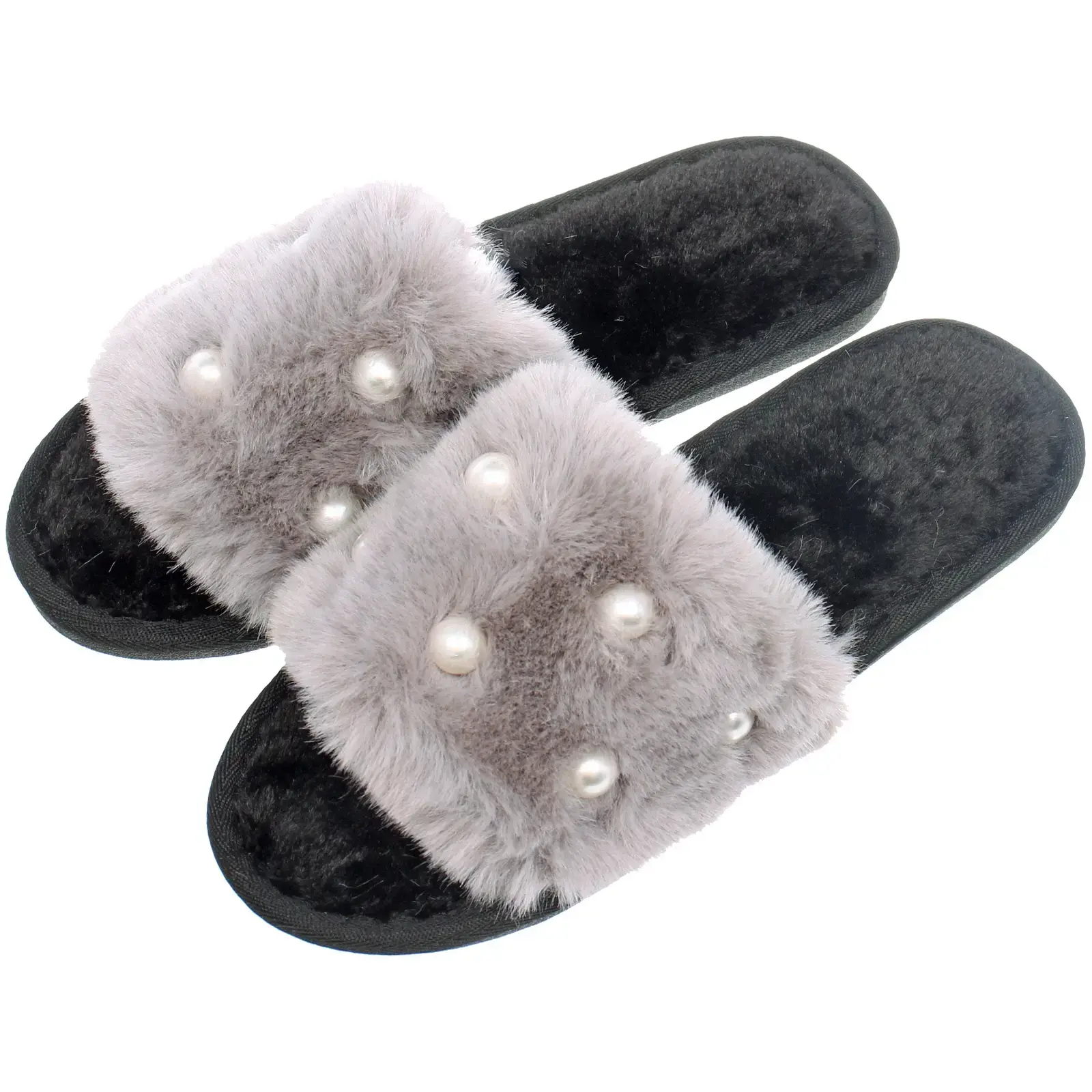 Домашние тапочки «DALIA» с искусственным мехом, размер 38-39, серый, мягкая подошва ПВХ