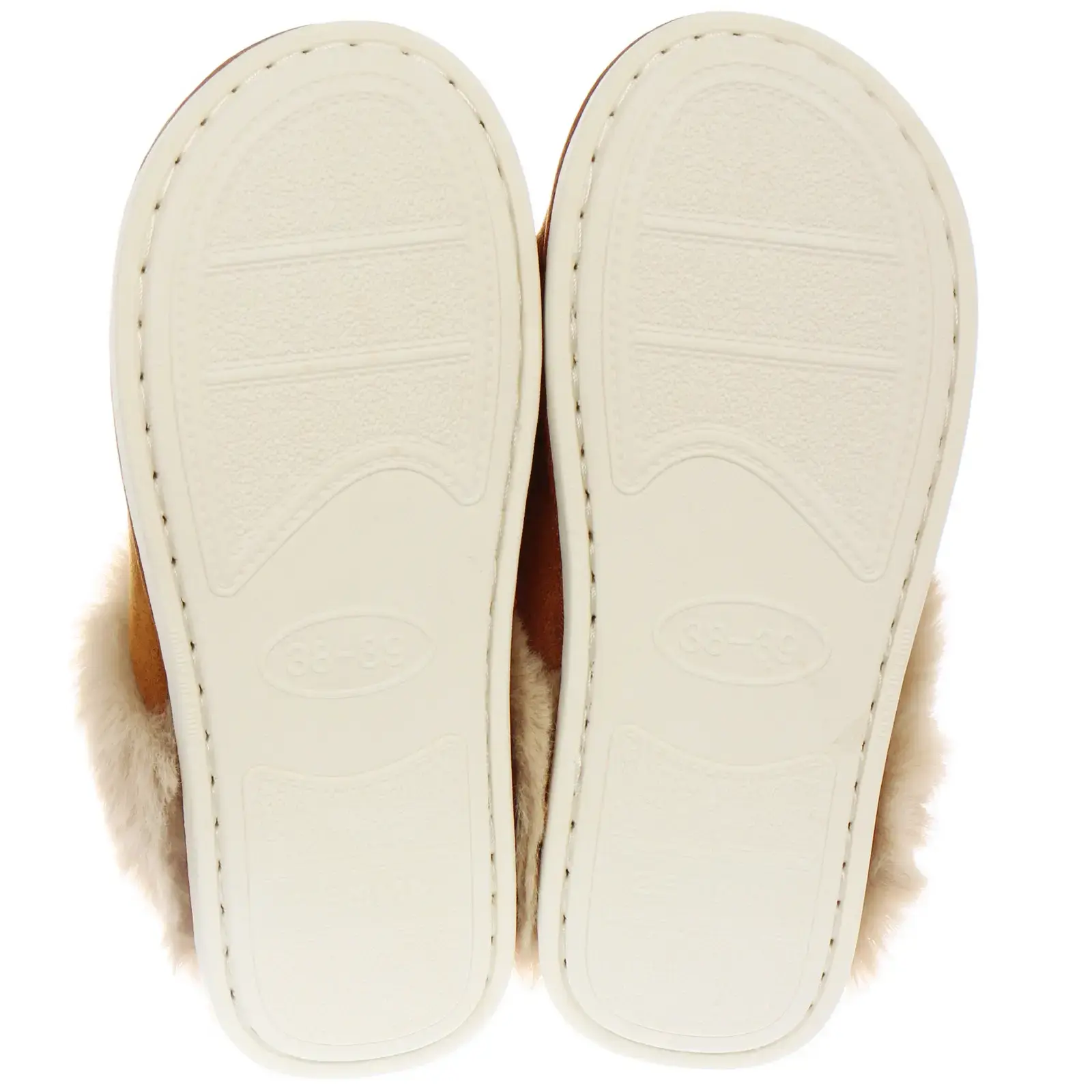 Тапочки домашние женские "IRIS", цвет капучино, р-р 38/39, замша/мех
