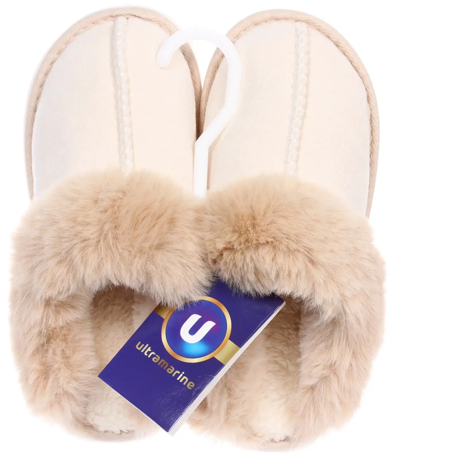 Широкая меховая оторочка по верхнему краю не только добавляет стиля, но и надежно фиксирует тапочки на ноге. Декоративная строчка по центру сохраняет форму изделия даже после многократного использования. Упругая подошва средней толщины (1.2 см) обеспечивает оптимальную амортизацию при ходьбе по любым поверхностям.