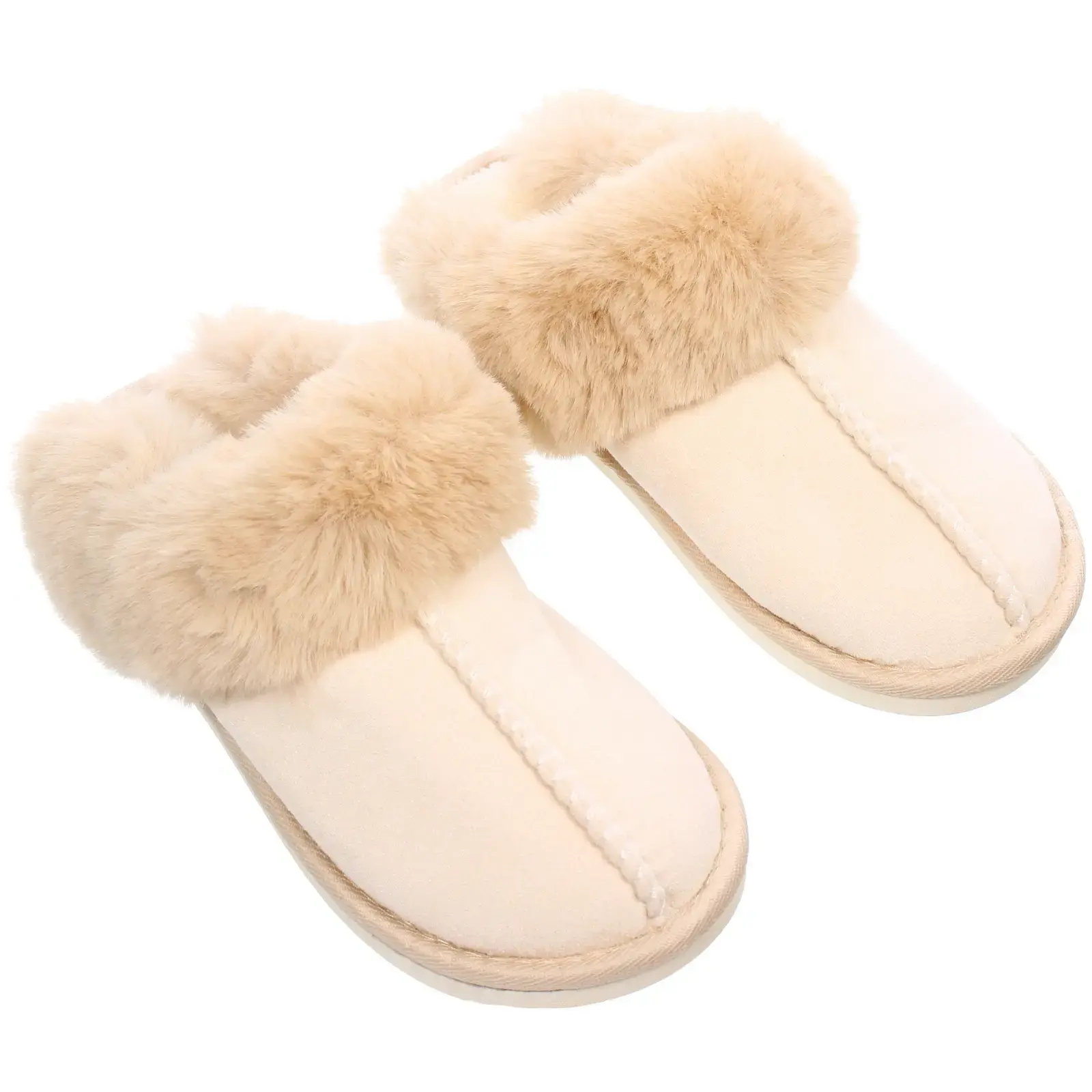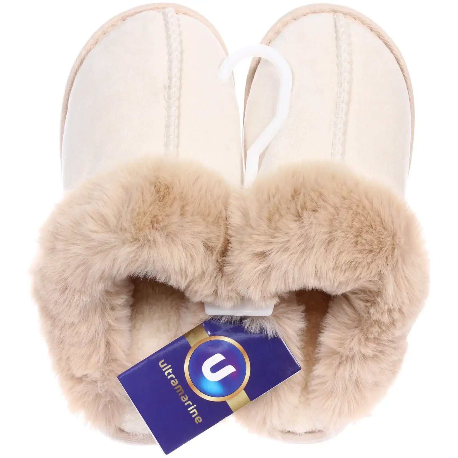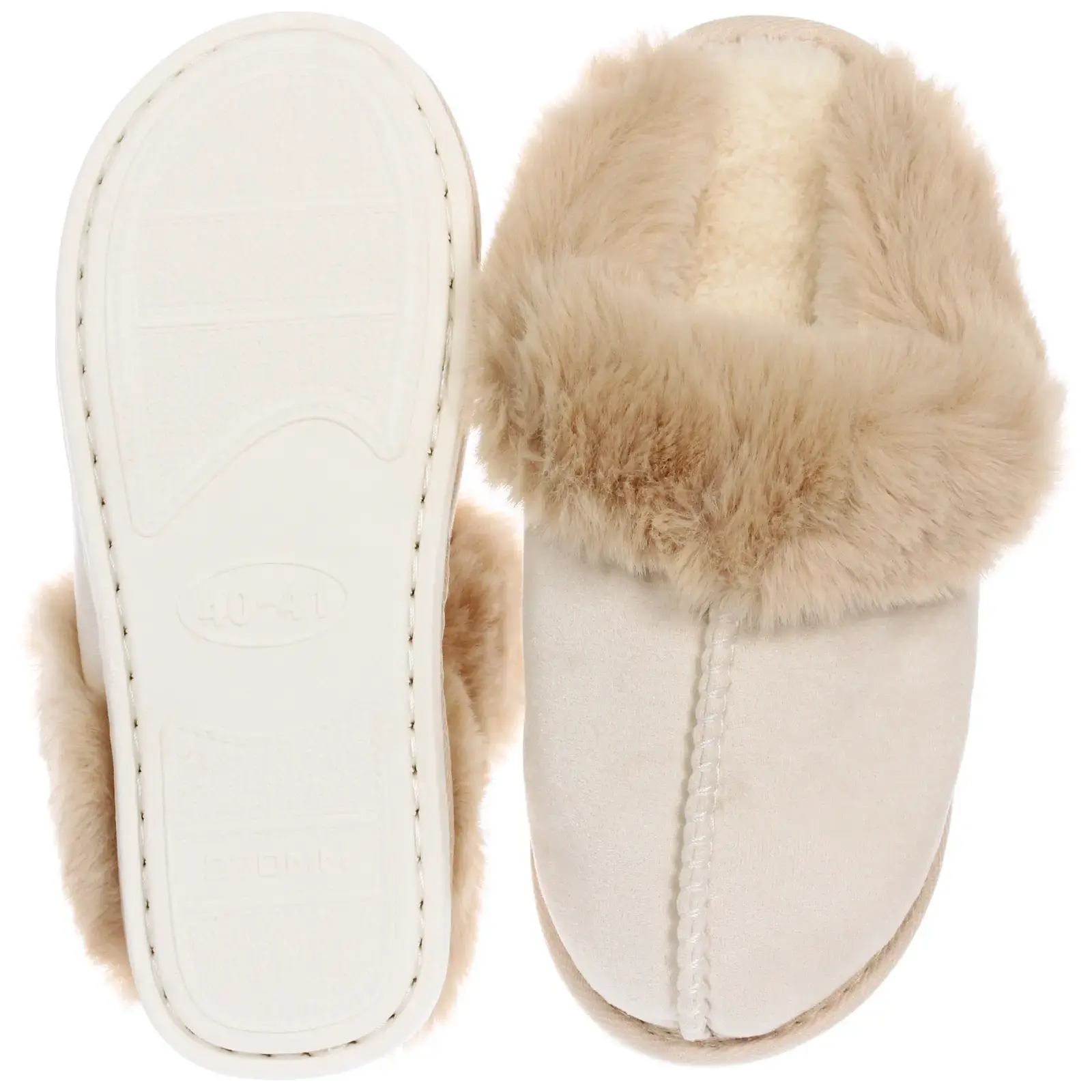 Домашние тапочки женские «IRIS» с меховой отделкой, молочный, 40-41, полиэстер/PVC
