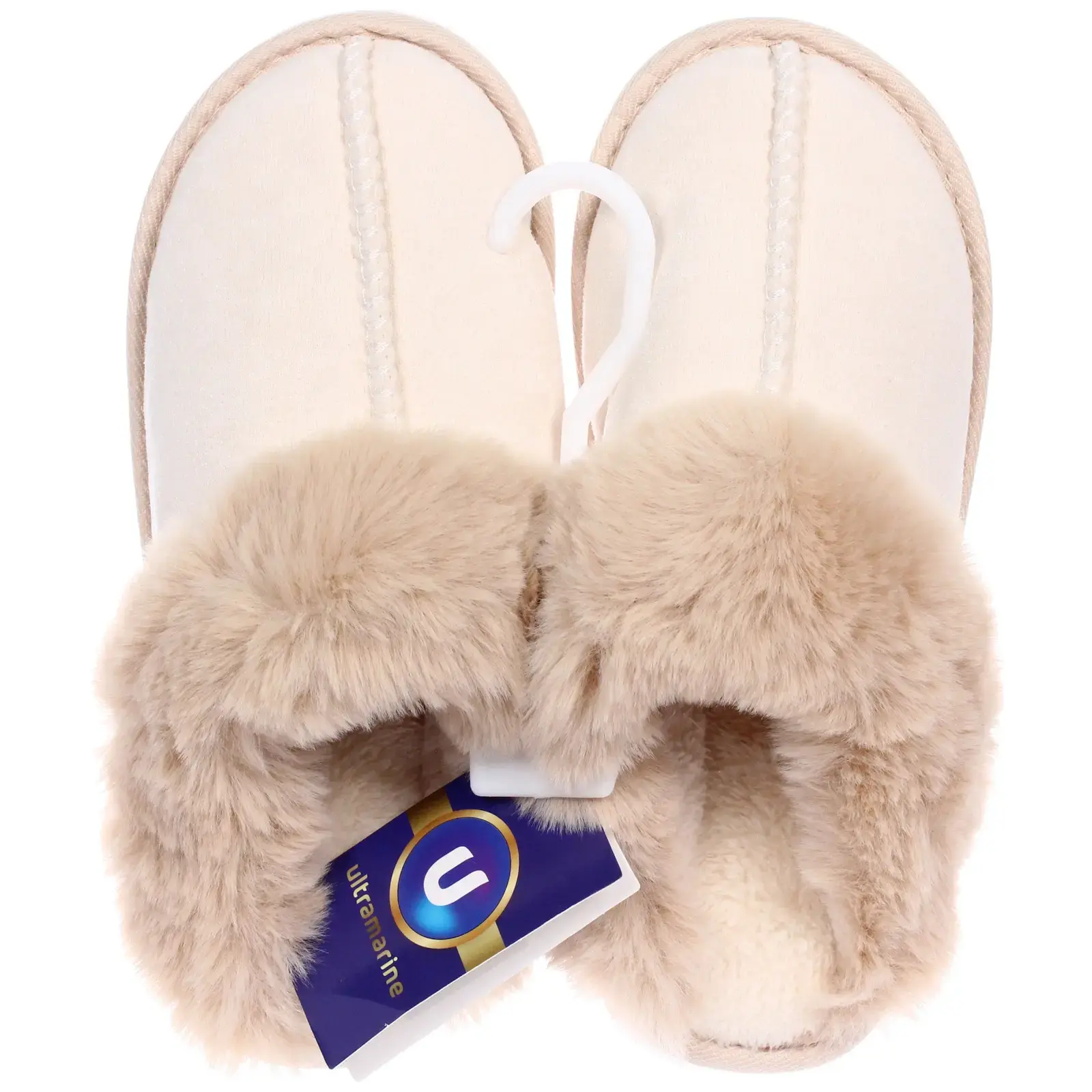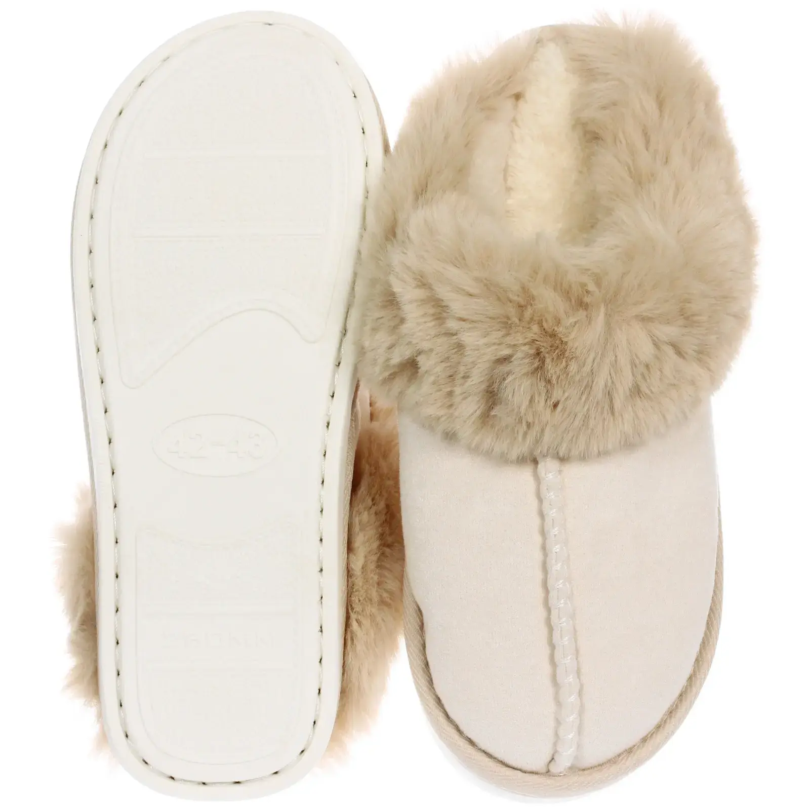 Тапочки домашние женские "IRIS", молочный, р-р 42/43, мягкий мех