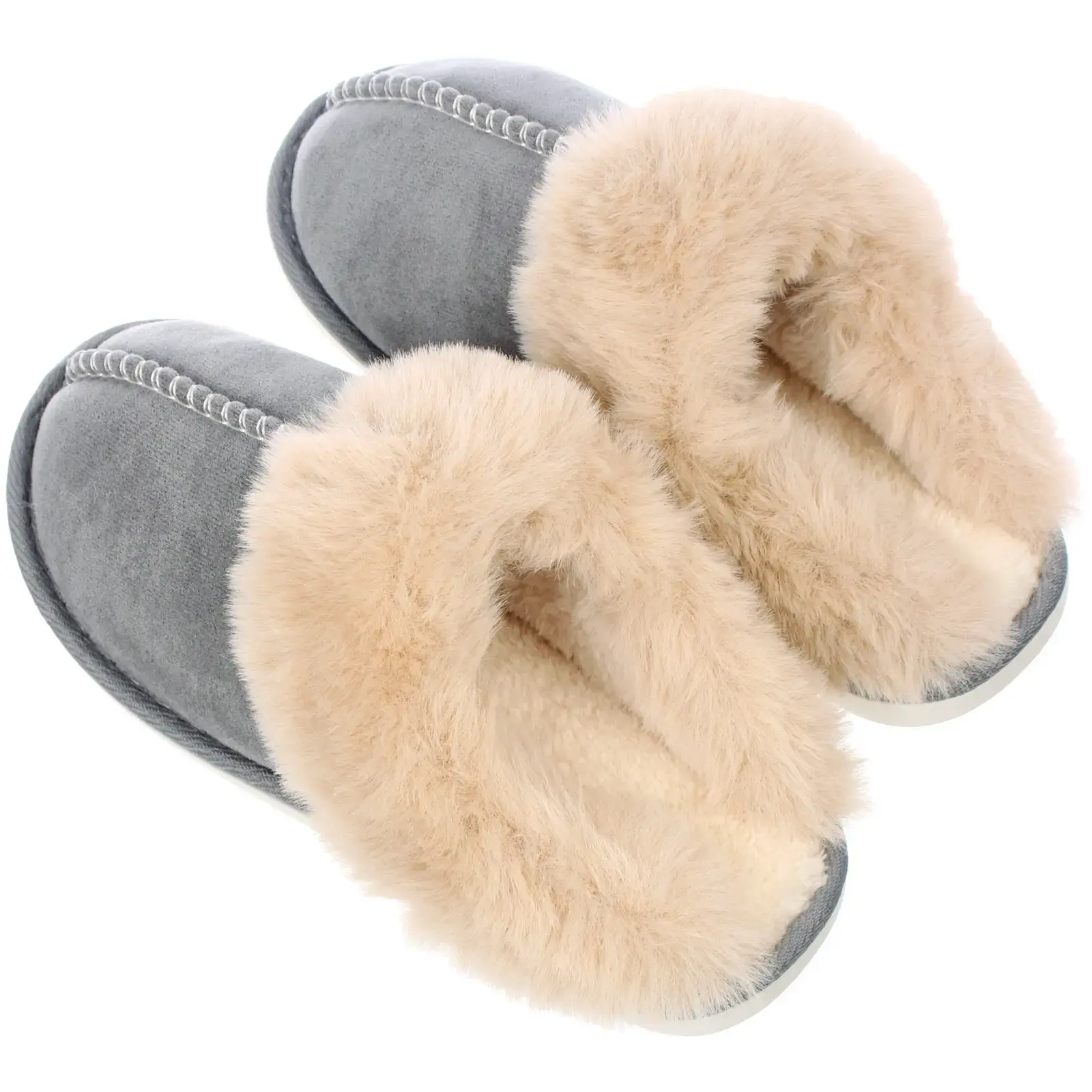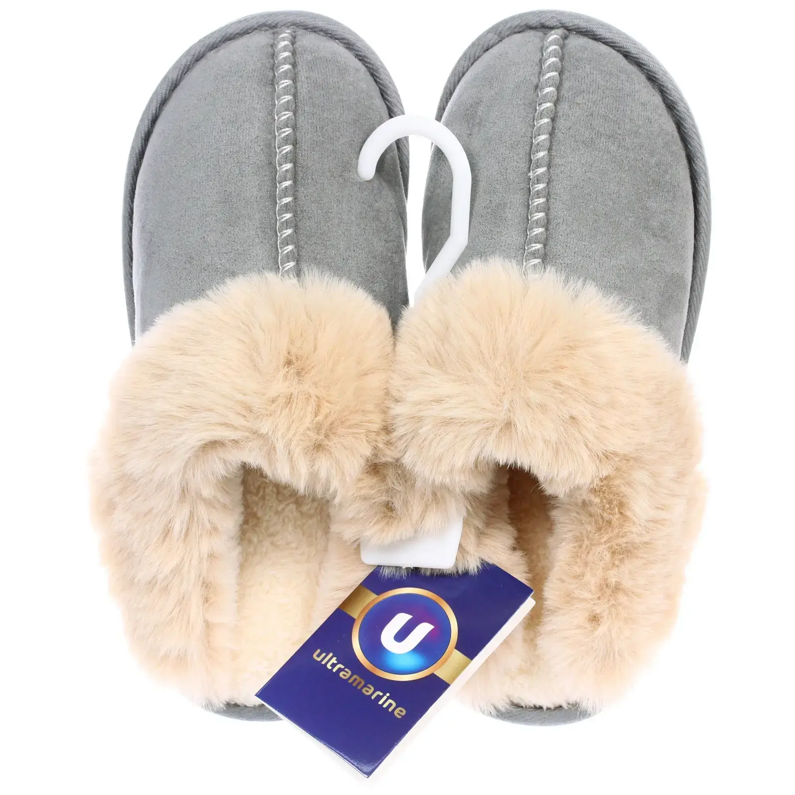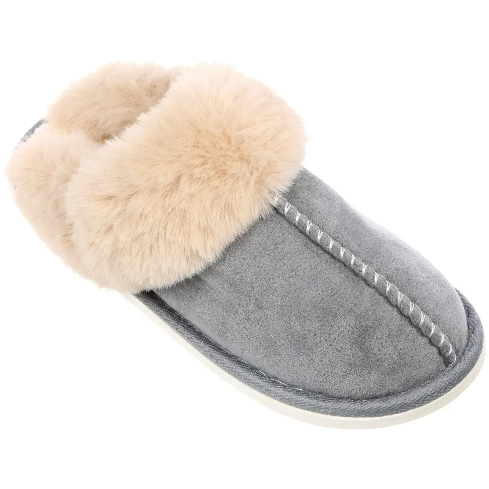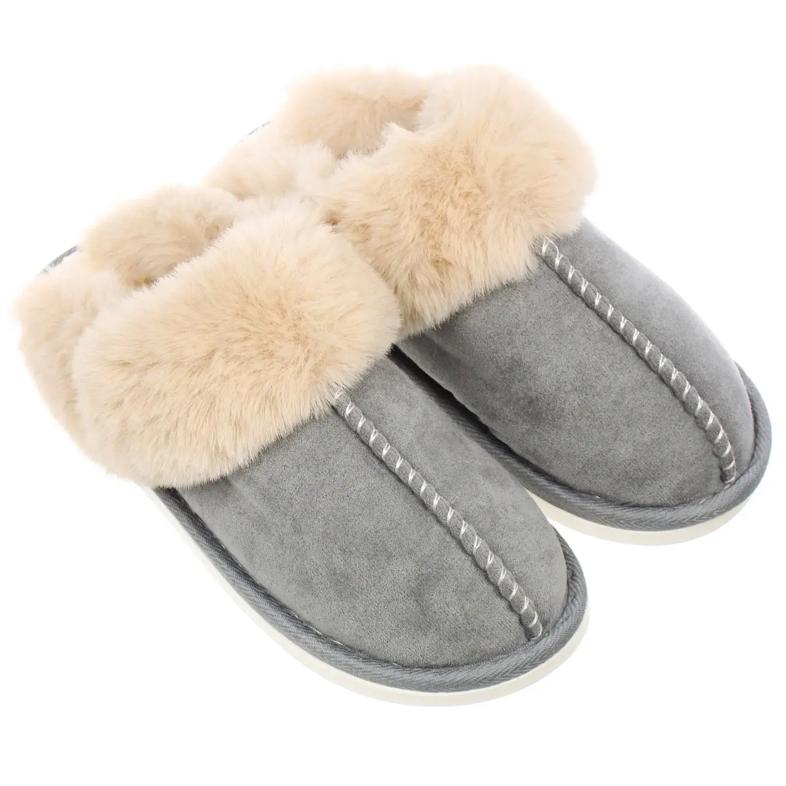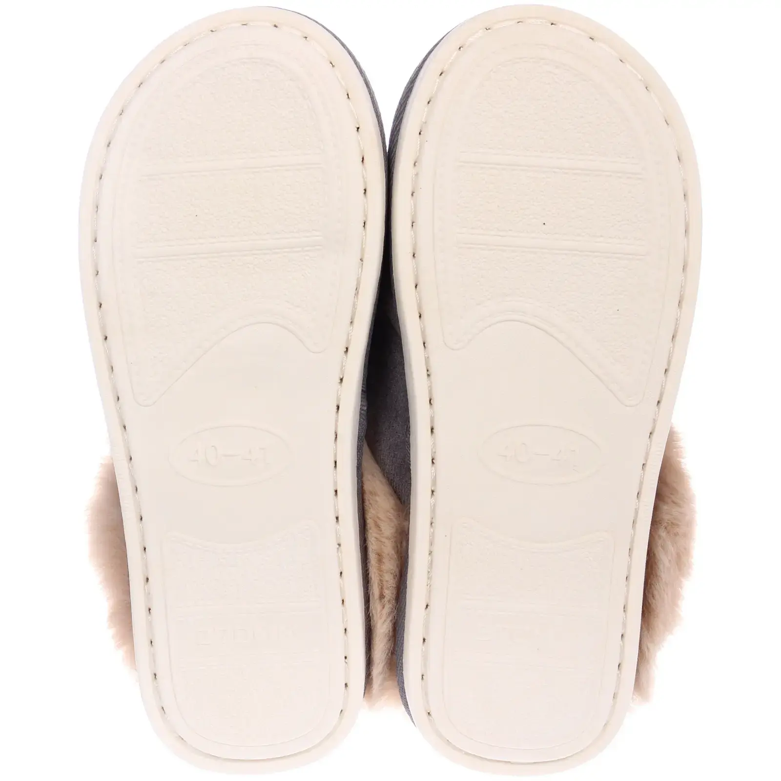 Тапочки домашние женские "IRIS", серый/бежевый, р-р 40/41, меховые