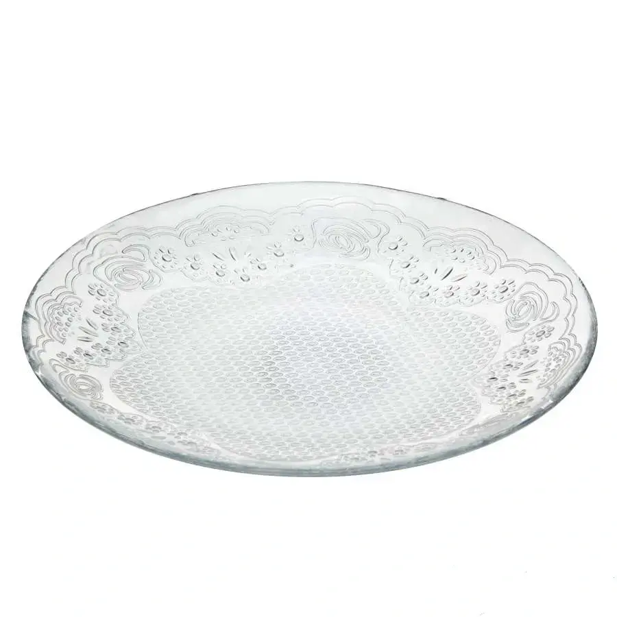 Стеклянная тарелка «Лейси» сочетает изысканный дизайн с практичностью закаленного стекла. Рельефный цветочный узор и волнистый край создают эффектную подачу блюд, превращая каждый прием пищи в эстетическое удовольствие.