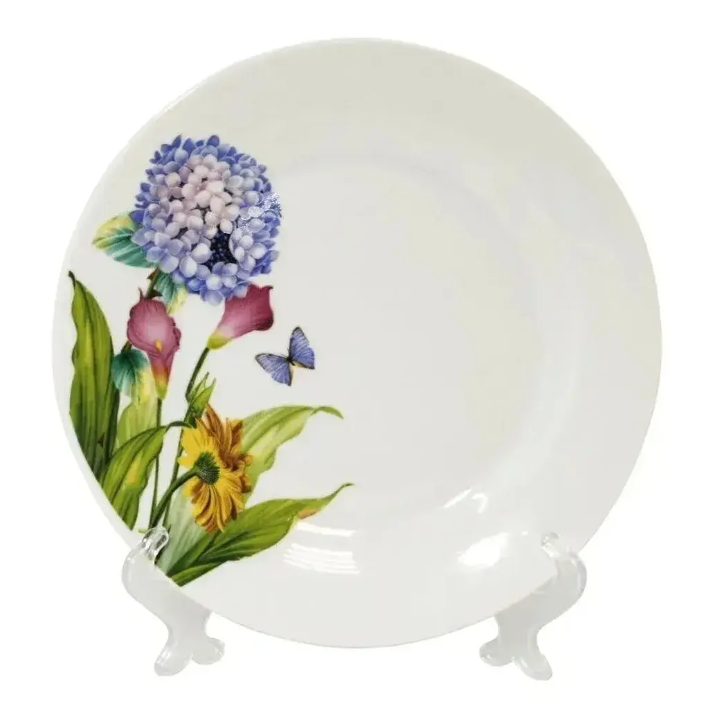 Керамическая тарелка с нежным цветочным орнаментом станет украшением любого стола. Идеально подходит для повседневного использования и особых случаев, сочетая практичность с художественной эстетикой.