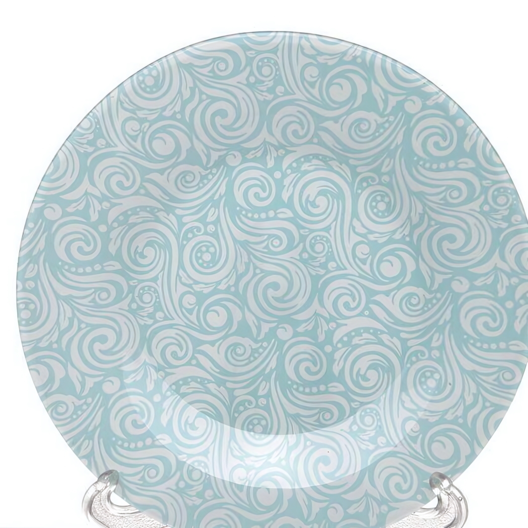 Тарелка стеклянная 'Бриз' 19,5см, светло-голубая с белым узором