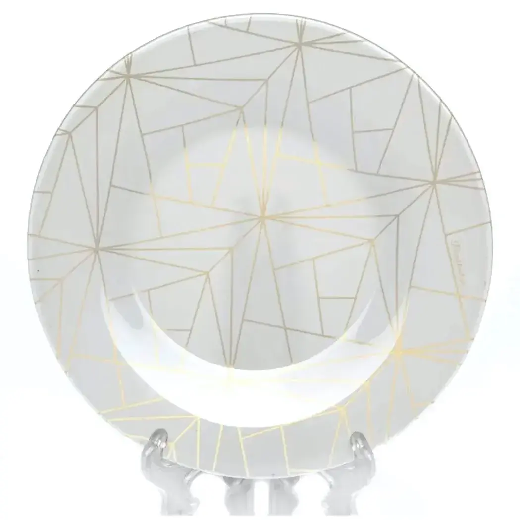 Тарелка обеденная «Линеа» 19,5 см, стекло, золотой геометрический узор, универсальный дизайн