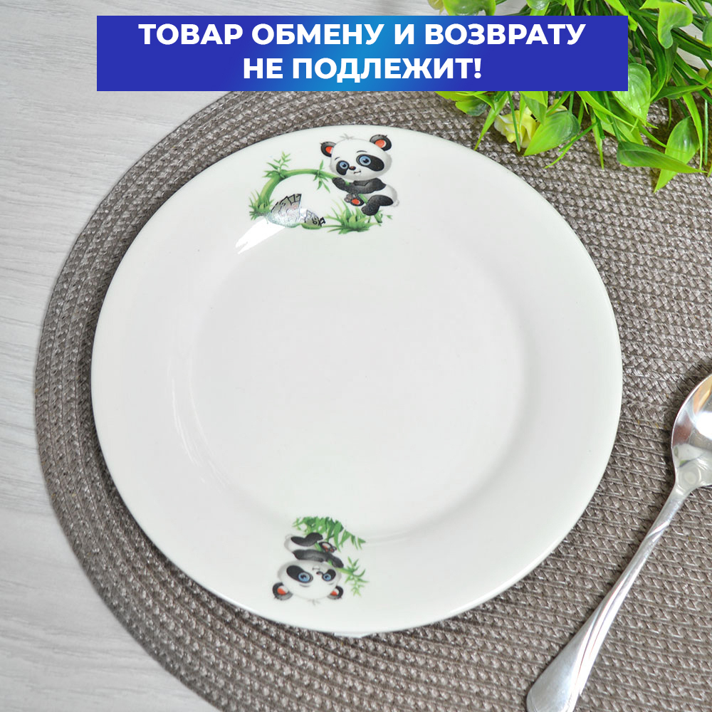 Тарелка фарфоровая «Панда» 20 см, детский дизайн с рисунком, устойчивая к сколам