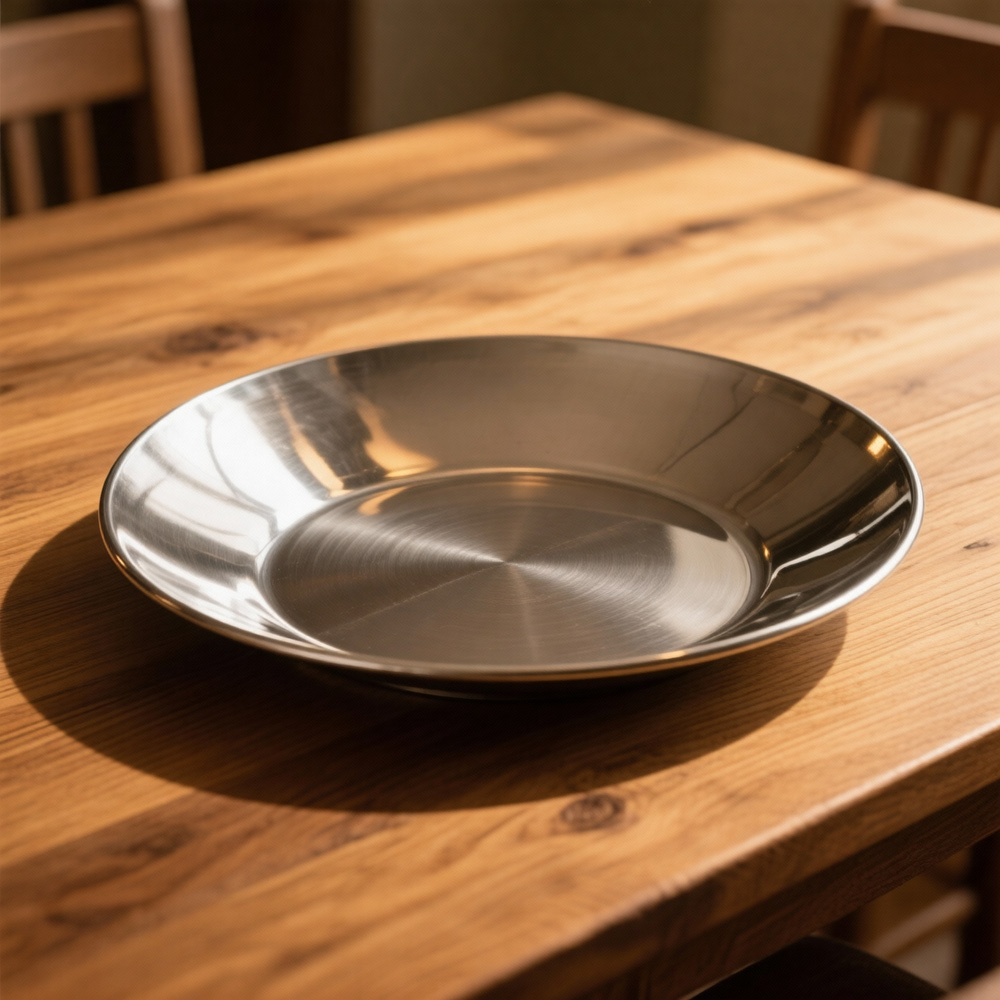 Лёгкая и прочная тарелка из нержавеющей стали создана для тех, кто ценит практичность и долговечность в повседневной жизни и путешествиях. Идеальный выбор для пикников, походов или сервировки домашних блюд — сохраняет тепло пищи и устойчива к деформации.