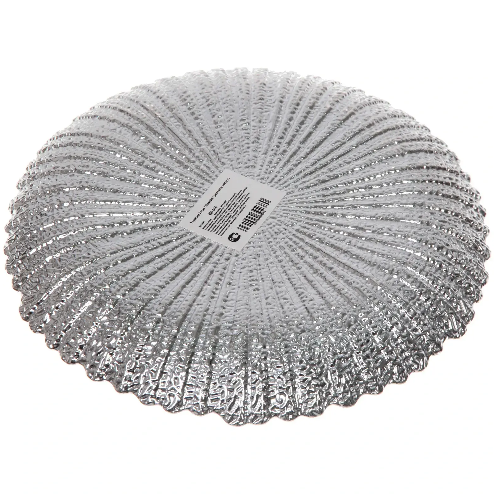 Размер тарелки составляет 20 см в диаметре, что делает её идеальной для сервировки. Материал — стекло, что придаёт ей блеск и прозрачность. Рельефная поверхность с радиальными линиями создаёт эффект лучей, добавляя визуальный интерес. Тарелка не только функциональна, но и станет стильным акцентом на вашем столе.