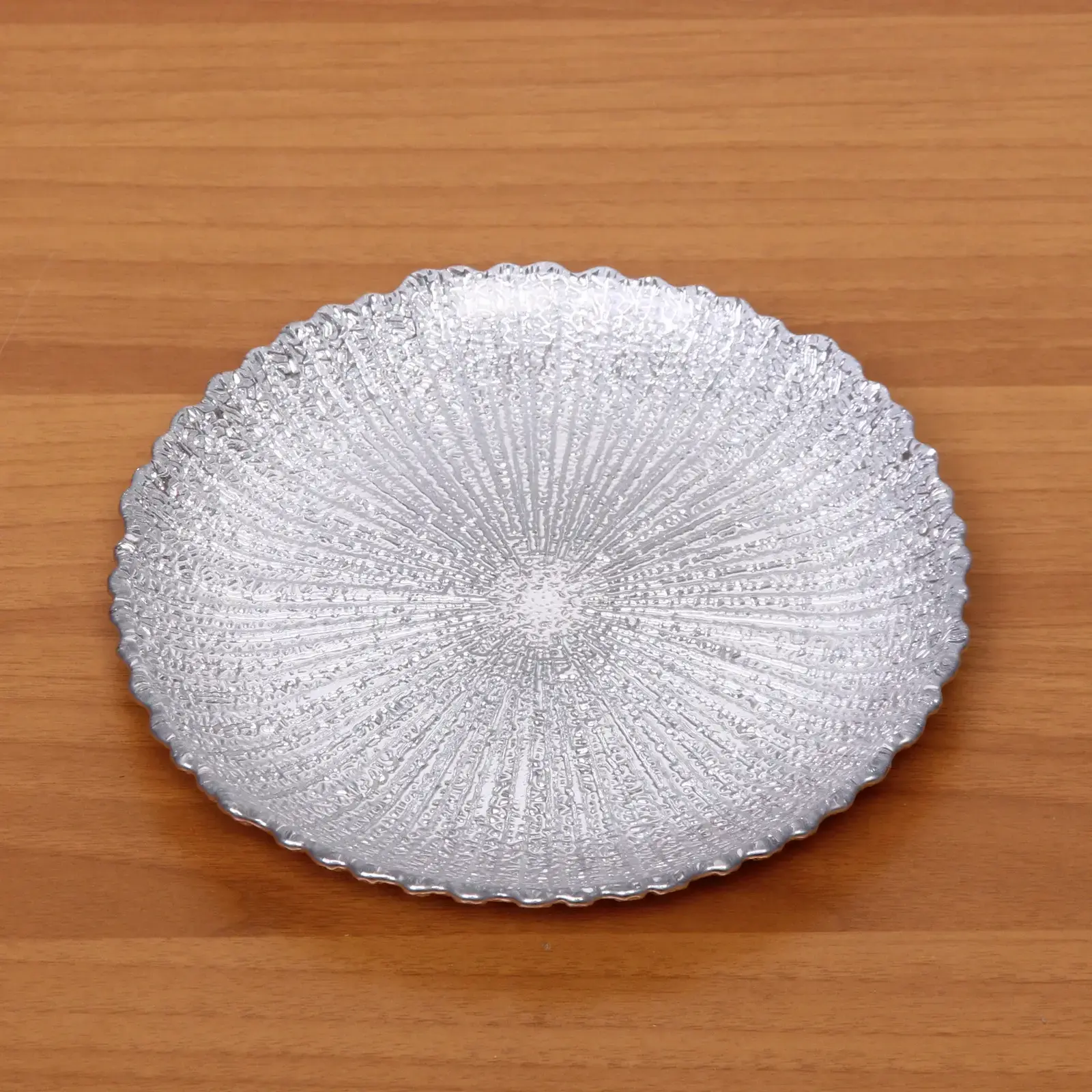 Тарелка имеет стандартный размер 20 см в диаметре, что делает её универсальной для различных блюд. Изготовленная из стекла, она обладает высокой прочностью и долговечностью. Серебристый цвет и волнистые края придают ей уникальный вид, который будет радовать глаз и подчеркивать вашу индивидуальность.