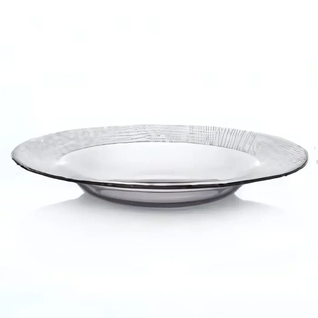 Эта стильная тарелка станет настоящим украшением вашего стола. Благодаря своему современному дизайну и качественному материалу, она не только привлекает внимание, но и обеспечивает комфорт в использовании. Прозрачный цвет с серым отливом и рельефный край придают тарелке уникальный вид, который подчеркнет любую сервировку.
