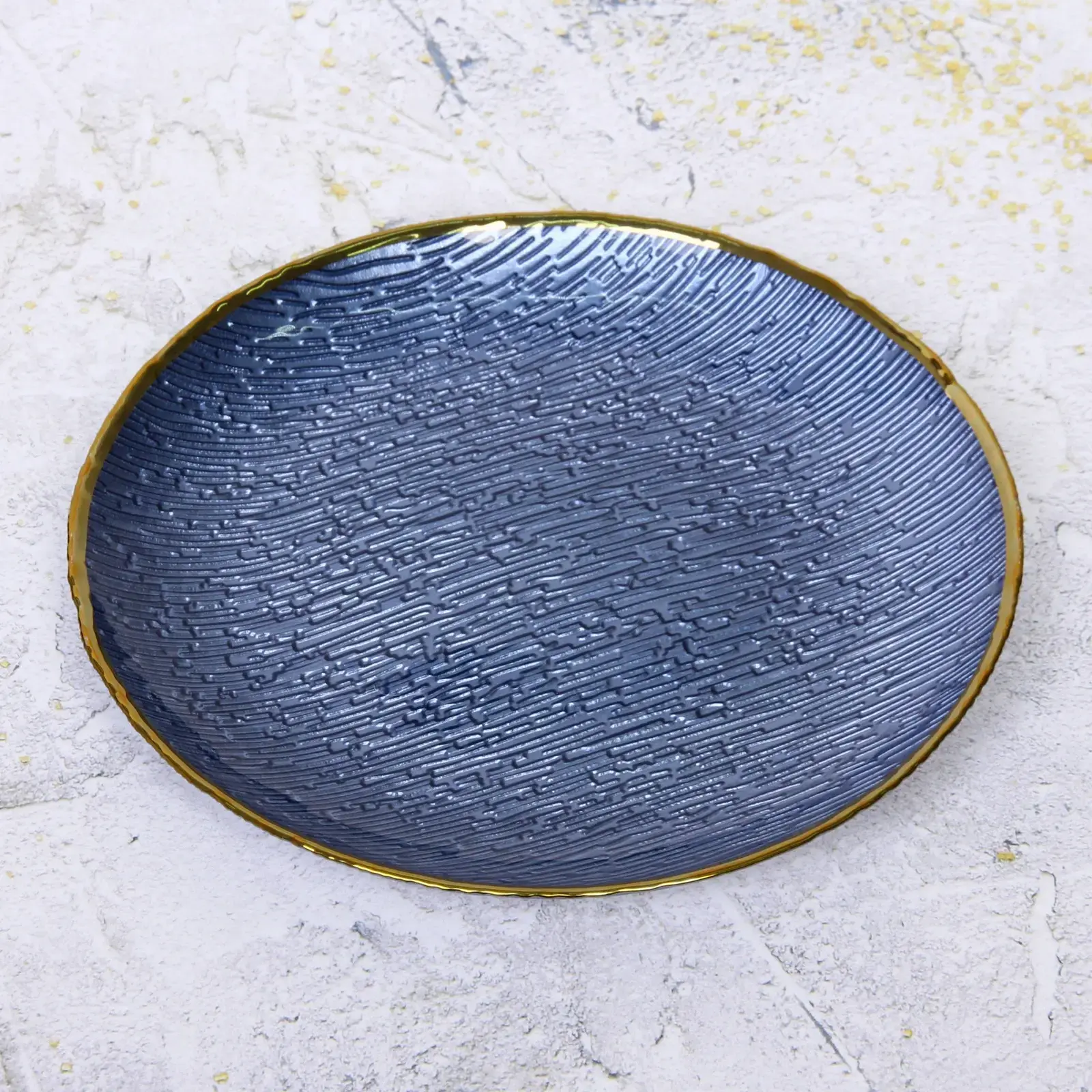 - Эстетика: Глубокий сапфировый цвет с золотистой каймой придаёт тарелке шикарный вид.