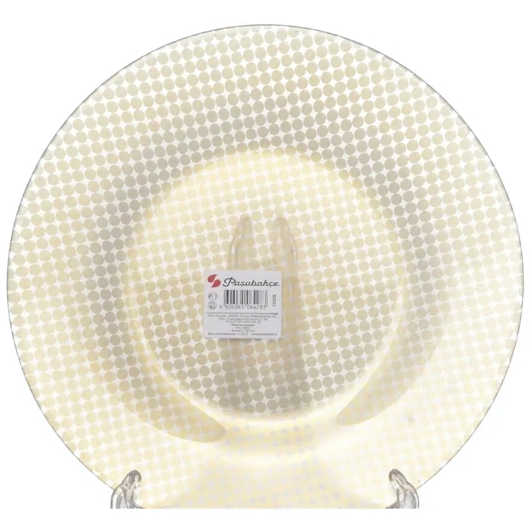 Создайте уютную атмосферу за столом с элегантной тарелкой из закаленного стекла. Универсальный дизайн с геометрическим узором подчеркнет изысканность блюд и станет практичным решением для повседневного использования.