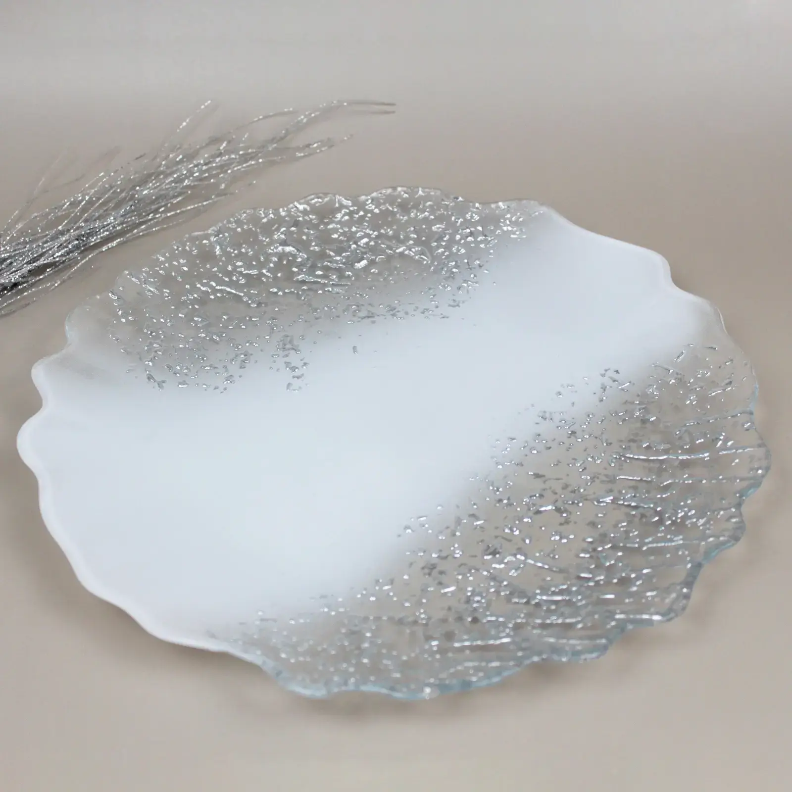 Тарелка стеклянная 28см «Аура» с белым серебром — это идеальный выбор для тех, кто ценит красоту и функциональность. Ее изысканный дизайн и рифленый край придают особый шарм любому столу, создавая атмосферу уюта и праздника. Эта тарелка станет не только практичным элементом сервировки, но и стильным акцентом вашего интерьера.