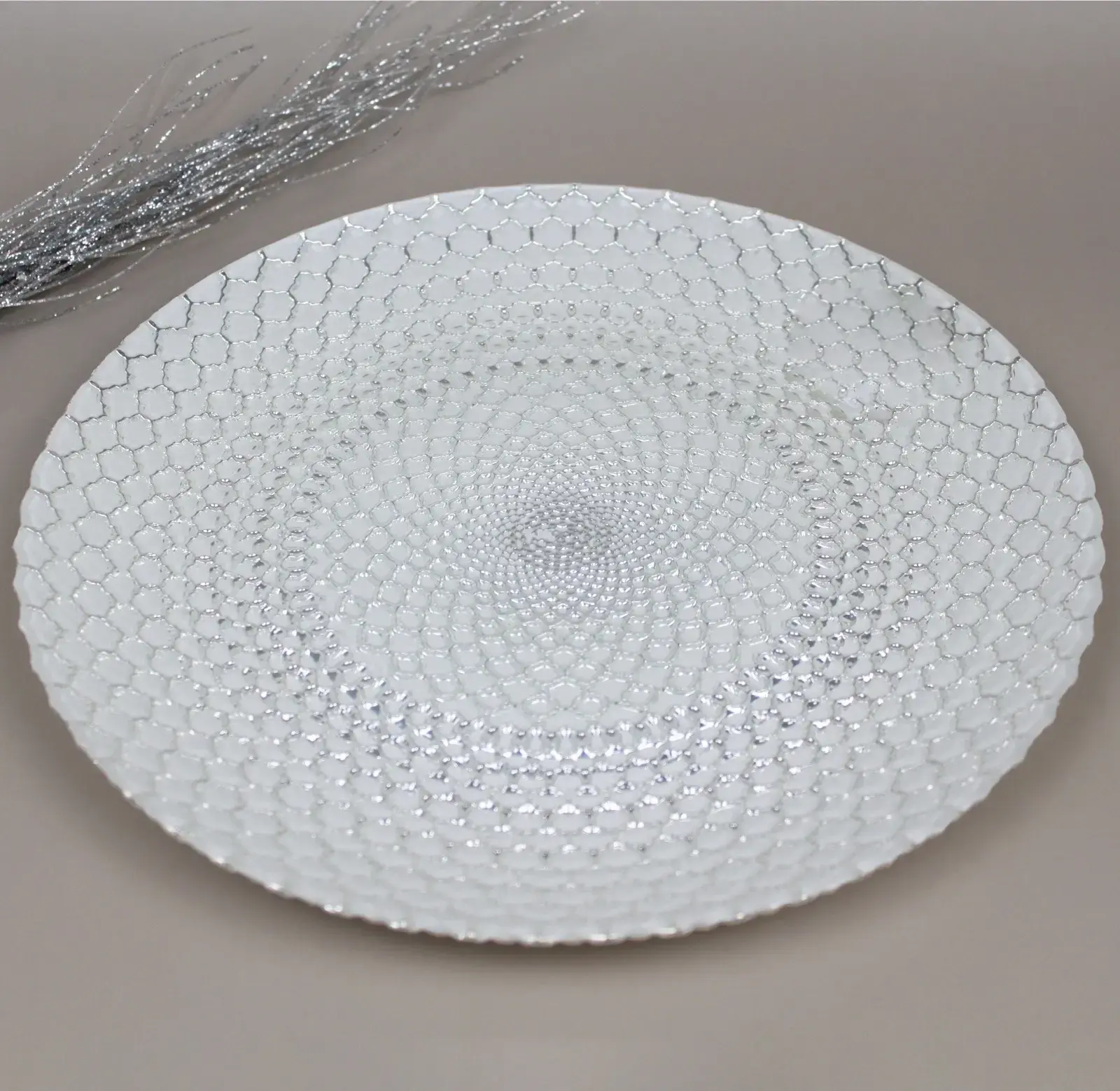 Тарелка выполнена из качественного стекла, что обеспечивает её прозрачность и блеск. Рельефный узор в виде ячеек придаёт ей уникальный вид, а волнистые края добавляют изящества. Размеры тарелки — 28 см в диаметре, что позволяет использовать её для различных блюд. Не упустите возможность сделать вашу кухню более стильной и функциональной с этой прекрасной тарелкой!