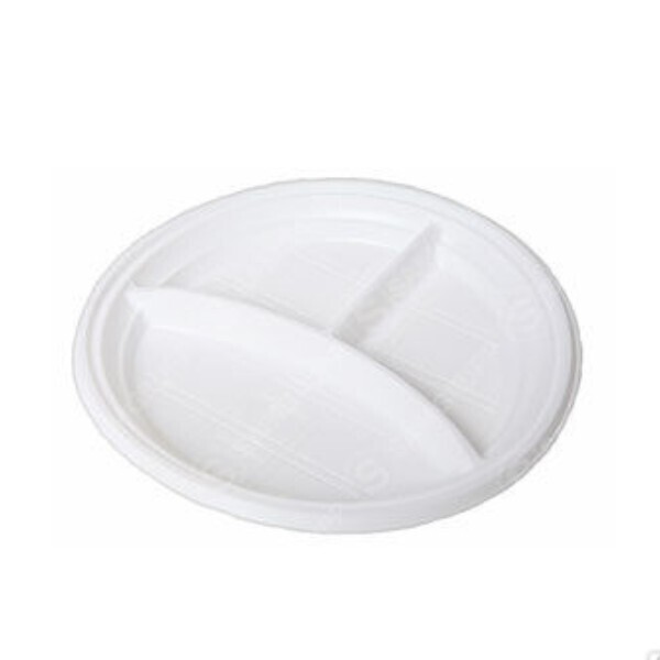 Тарелка одноразовая 3-х секционная «Мистерия» D210мм, пластик, белая, комплект 100 шт