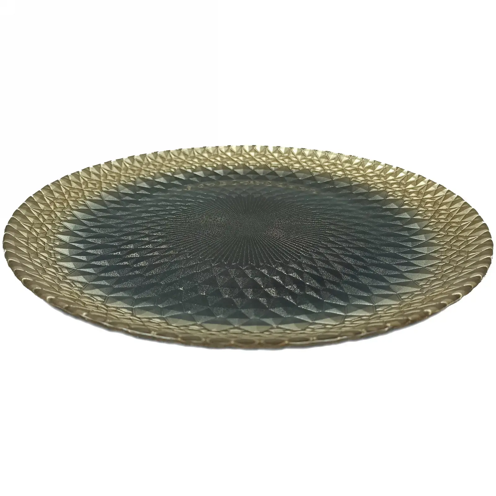 Тарелка диаметром 32 см с рельефным дизайном станет идеальным дополнением к вашему столу, придавая ему изысканный вид. Ее черно-золотая цветовая гамма и блестящая поверхность создают атмосферу роскоши и стиля, что делает ее отличным выбором для торжественных мероприятий и повседневного использования.