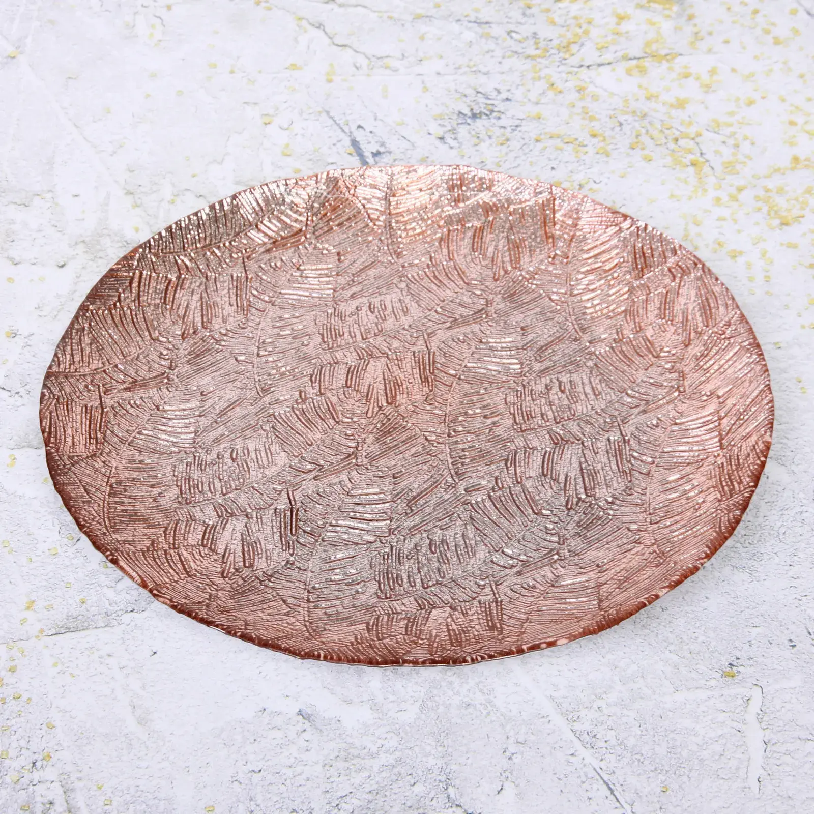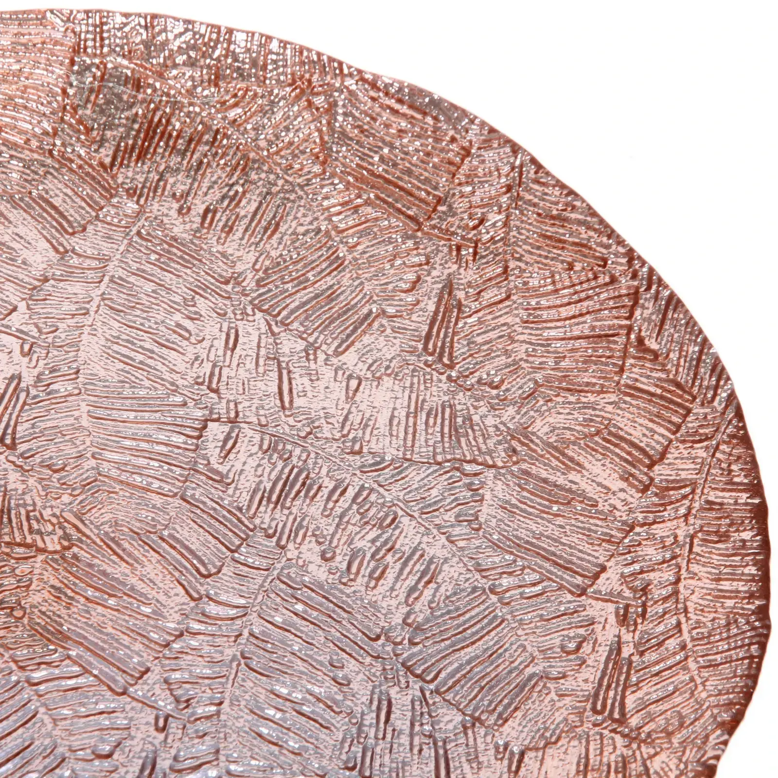 Тарелка диаметром 32 см в розовом золоте — это не просто посуда, а стильный элемент декора, который добавит изысканности любому застолью. Благодаря своему блестящему металлическому цвету и рельефной текстуре, она станет настоящим украшением вашего стола, привлекая внимание гостей и создавая атмосферу уюта и комфорта.