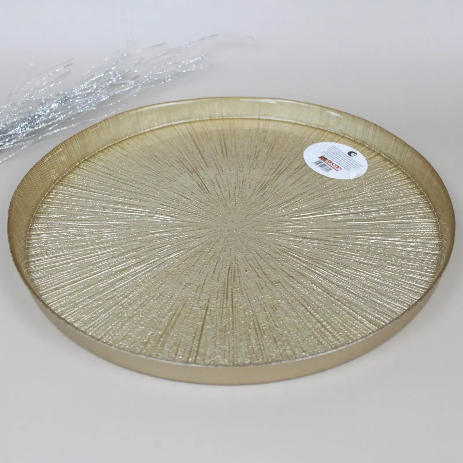 Размер тарелки составляет 32 см в диаметре, что позволяет удобно размещать на ней разнообразные блюда. Стеклянный материал обеспечивает легкость и прочность, а также позволяет видеть красоту подаваемых блюд. Тарелка «Золотая кувшинка» станет не только функциональным, но и стильным элементом вашей кухонной утвари.
