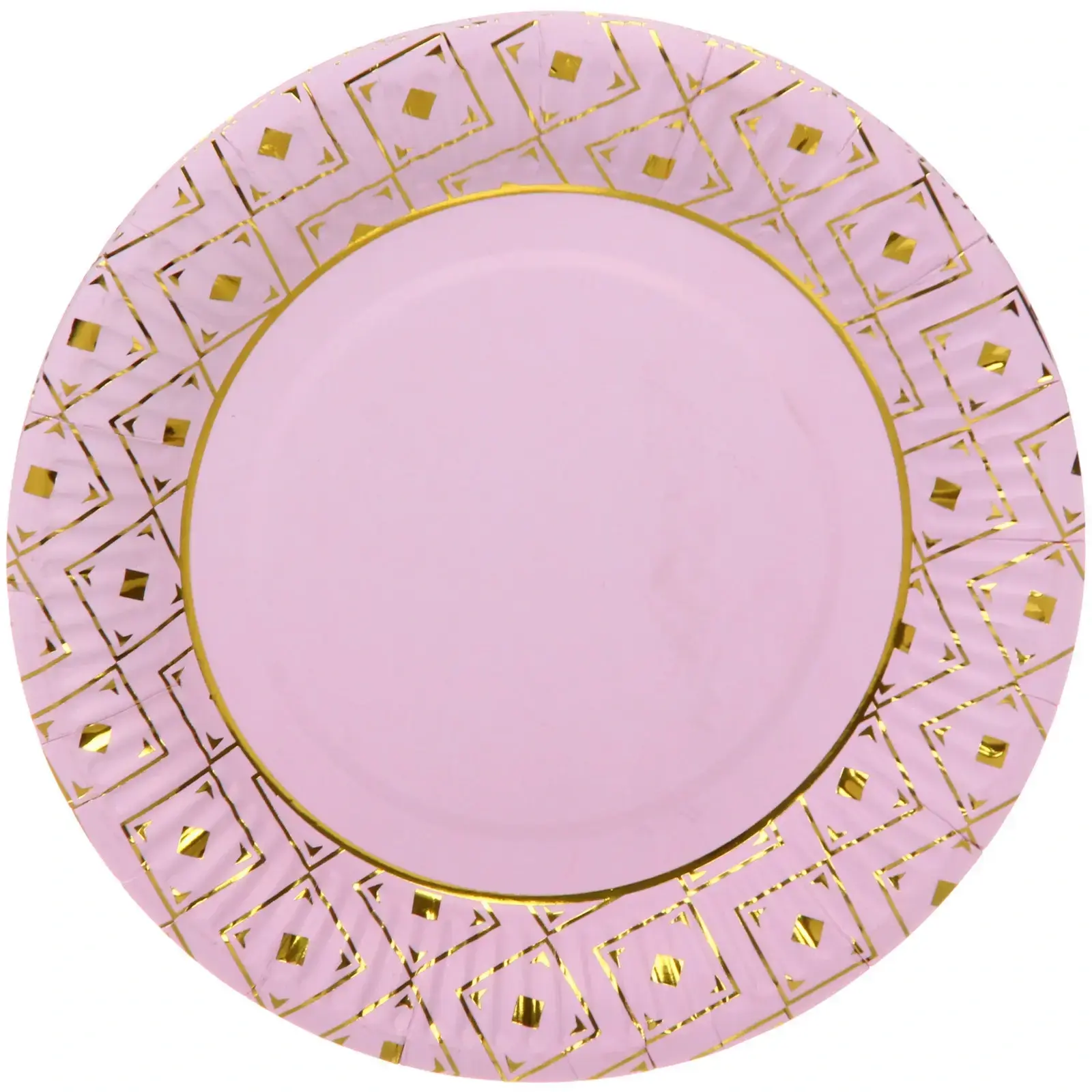 Тарелки изготовлены из бумаги, что делает их экологически чистым выбором для вашего праздника. Они легкие и компактные, что удобно для хранения и транспортировки. Размер 18 см подходит для большинства блюд, а розовый цвет с золотыми элементами делает их универсальными для различных тематик мероприятий.