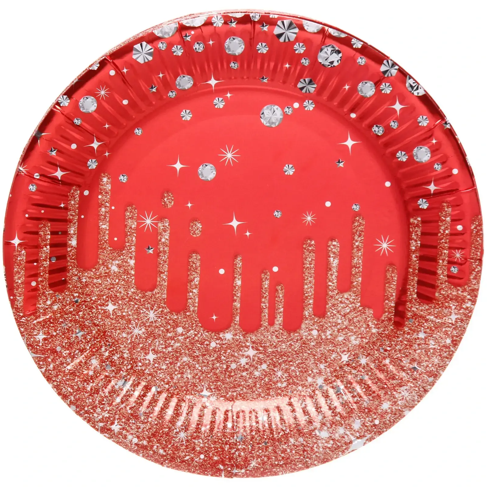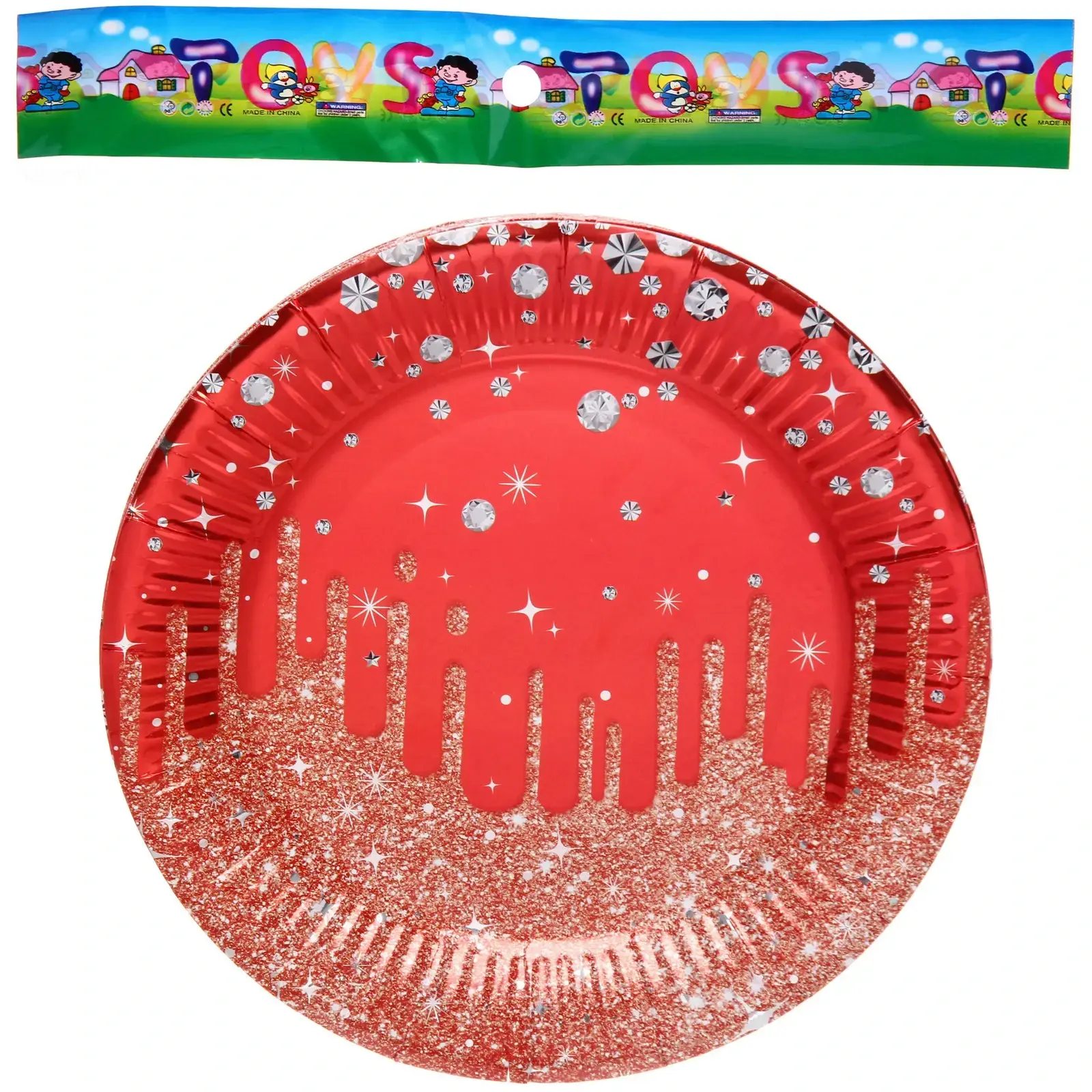 Материал: бумага с блестящим покрытием, диаметр: 18 см. Тарелки поставляются в упаковке по 10 штук, идеально подходят для украшения праздничного стола и быстрого обслуживания гостей. Просты в использовании и утилизации, обеспечивают стильное оформление и комфорт.