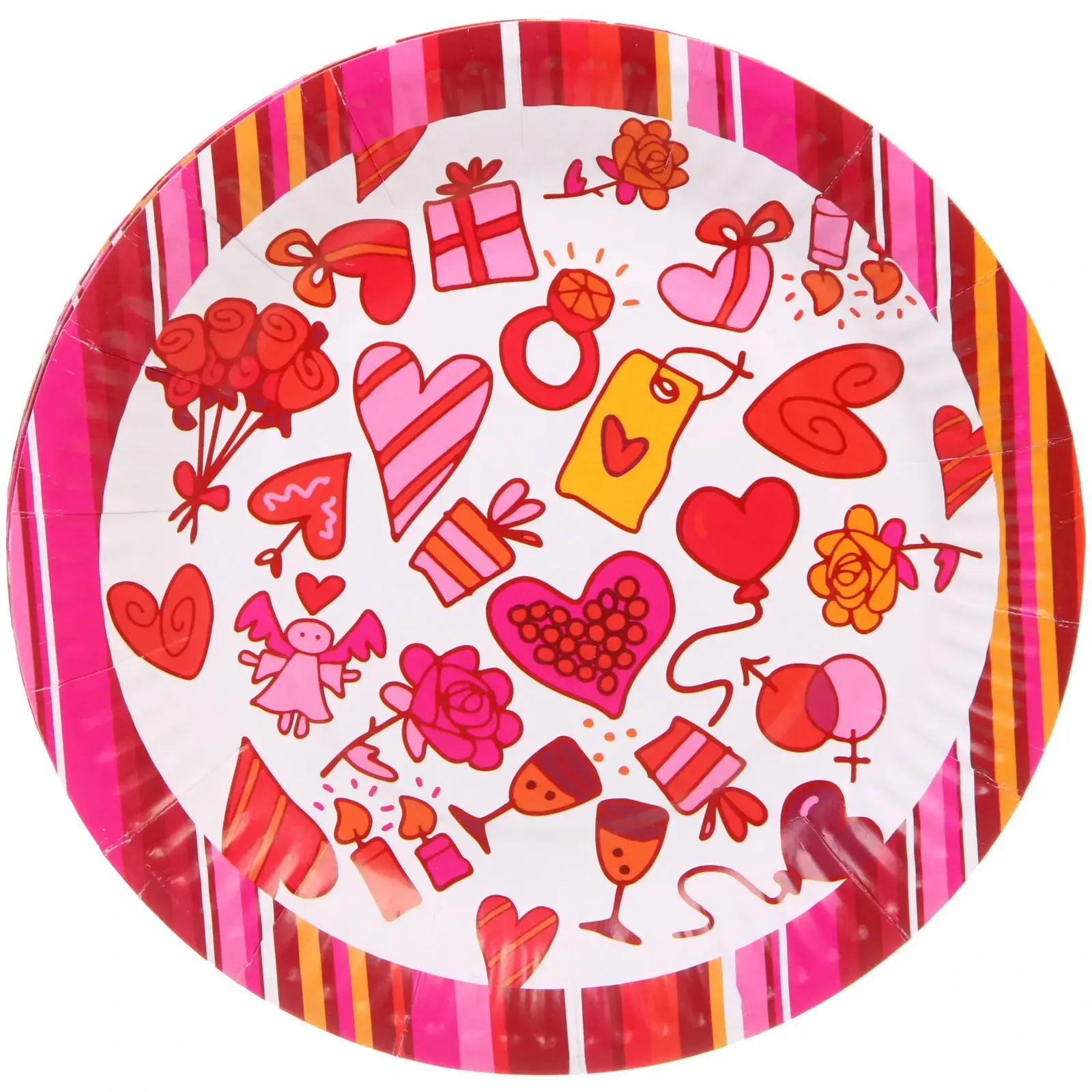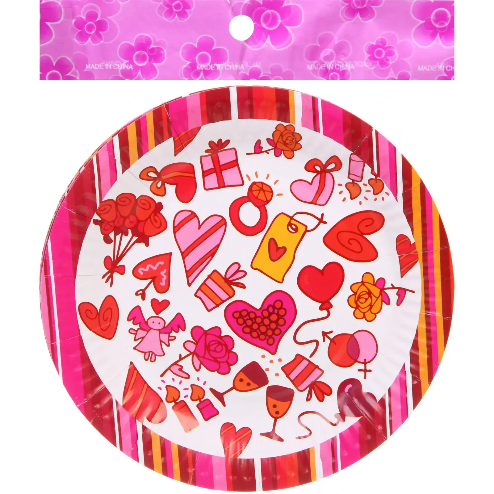 Тарелка бумажная 18см 'Heart', набор 10шт, праздничный дизайн