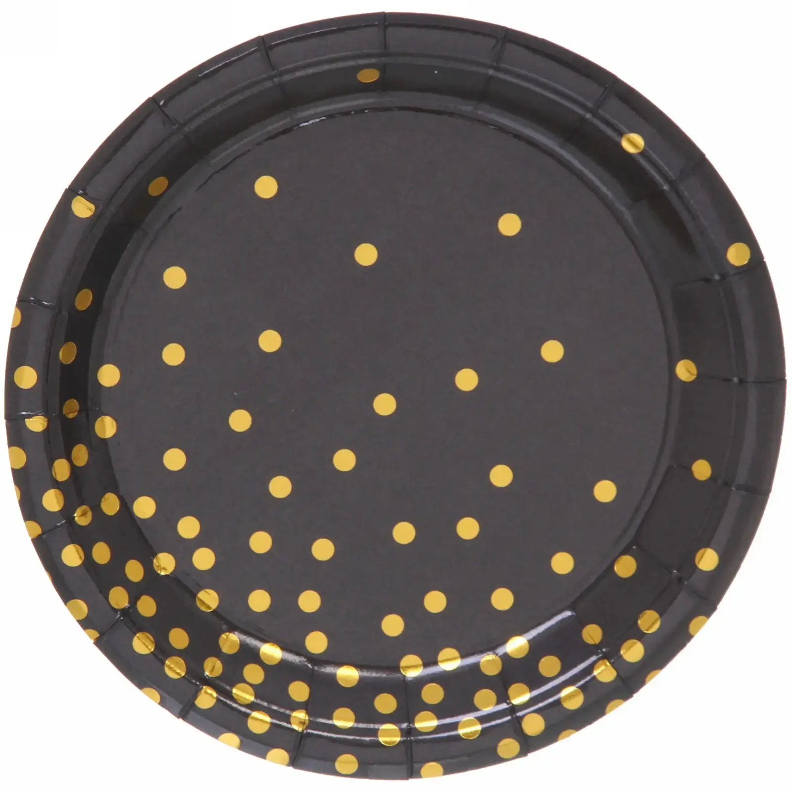 Тарелка бумажная «Конфетти» 18 см, праздничный дизайн, черный с золотом, набор 10 шт