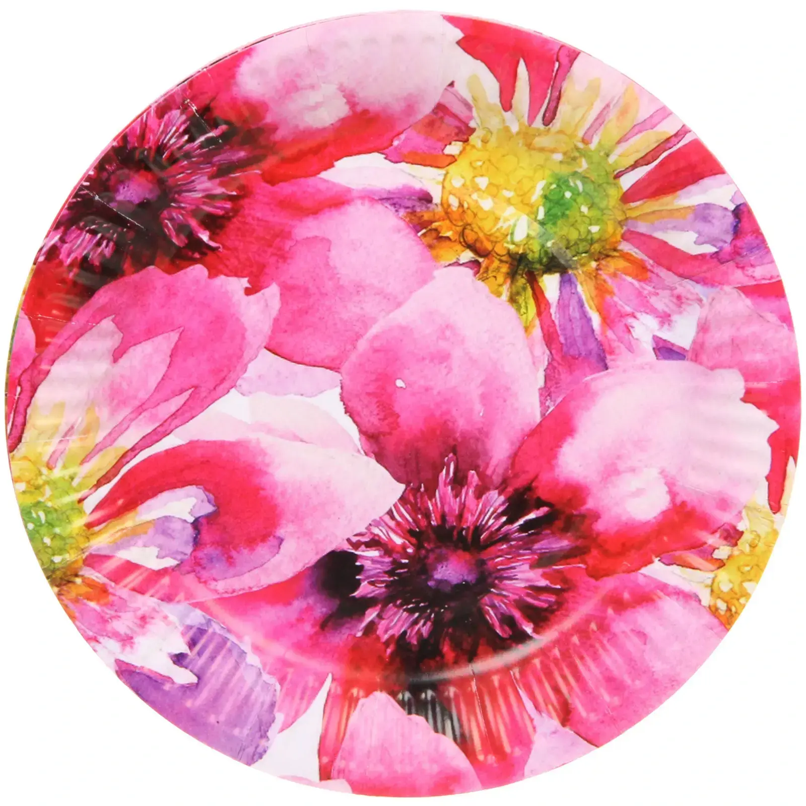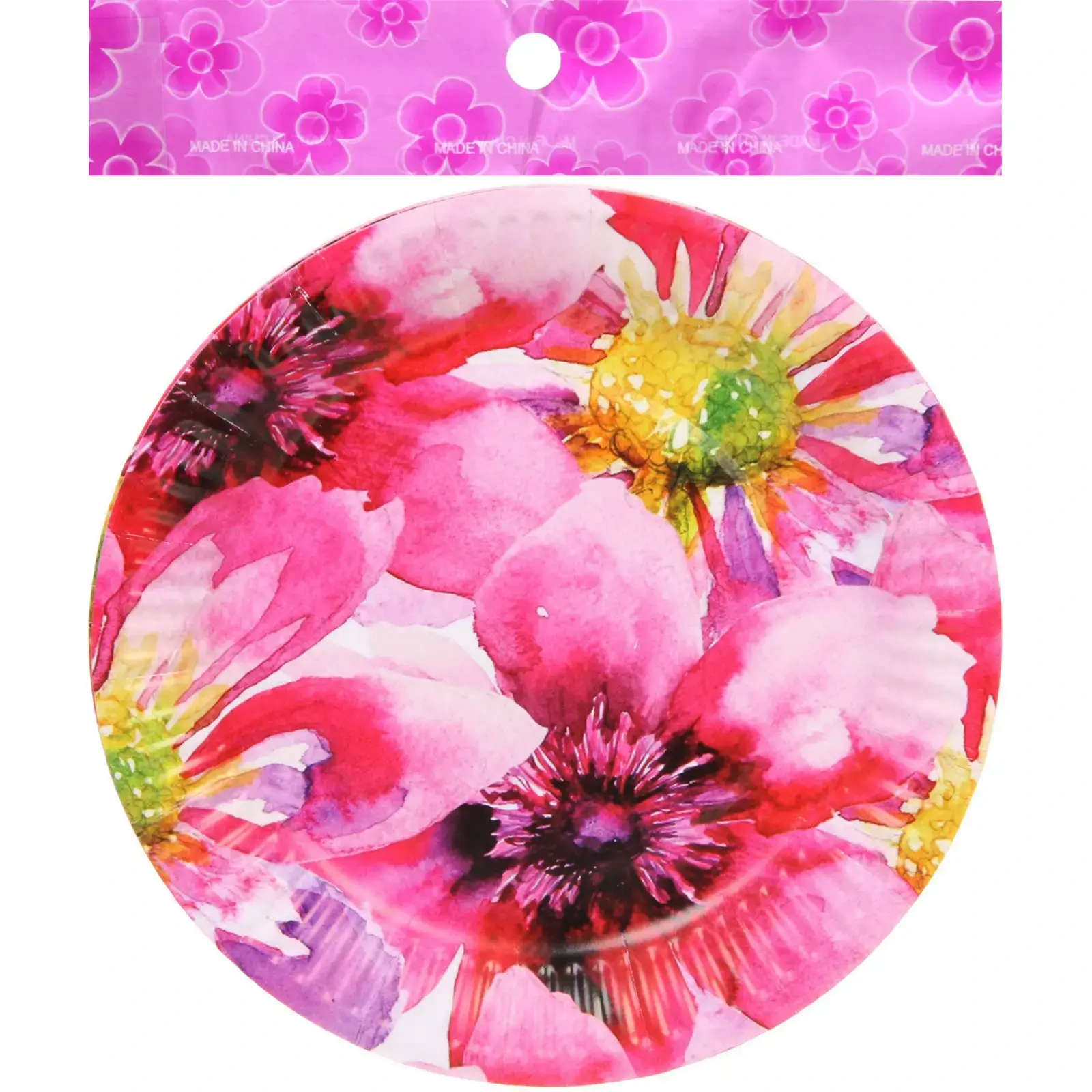 Тарелки диаметром 18 см изготовлены из качественной бумаги, которая обеспечивает легкую утилизацию и надежность в использовании. Универсальный дизайн с цветочным рисунком и яркими оттенками розового, желтого и зеленого придаст вашему столу живость и уют.