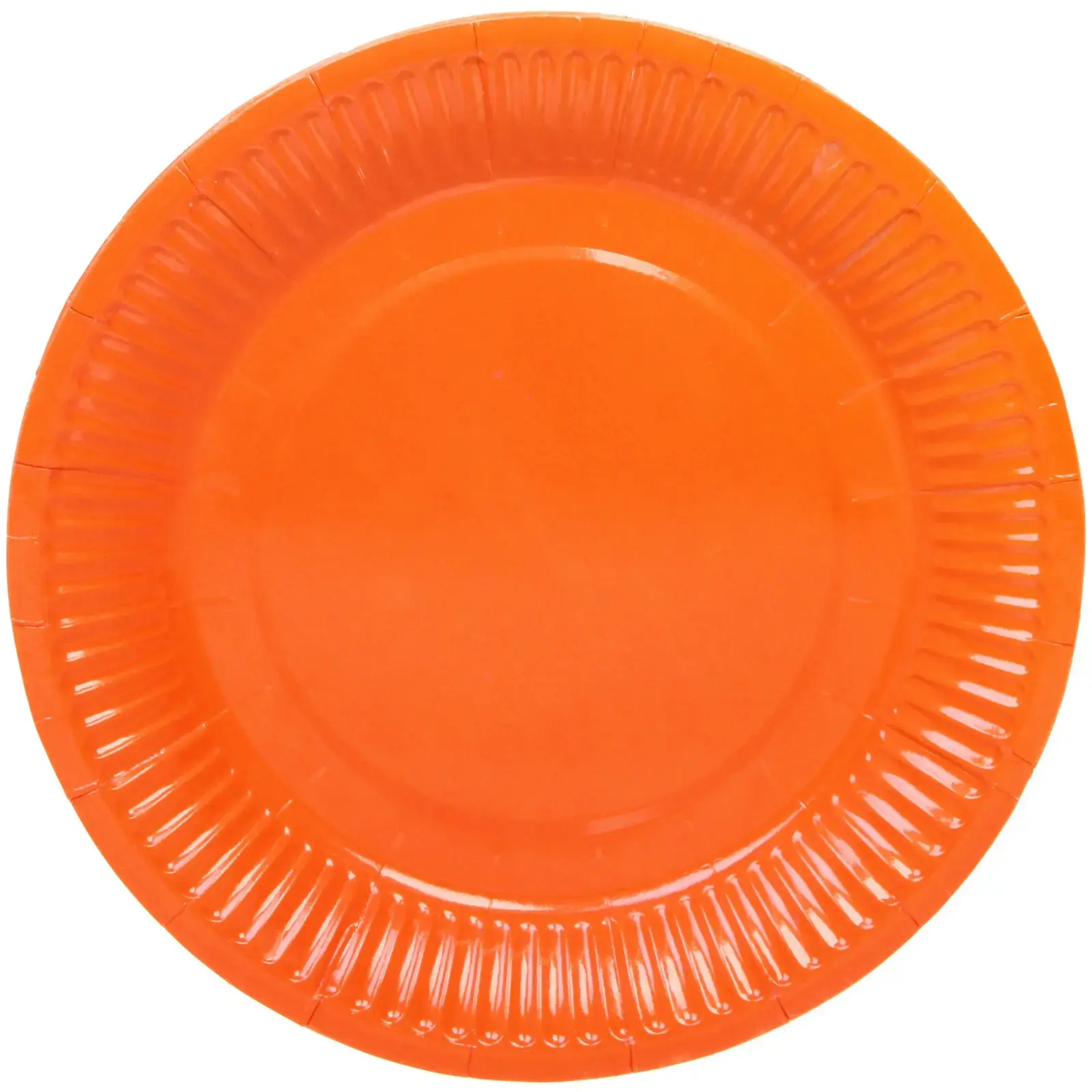 Тарелка бумажная 18 см, набор 10 шт, оранжевый, рифлёный ободок, для праздников