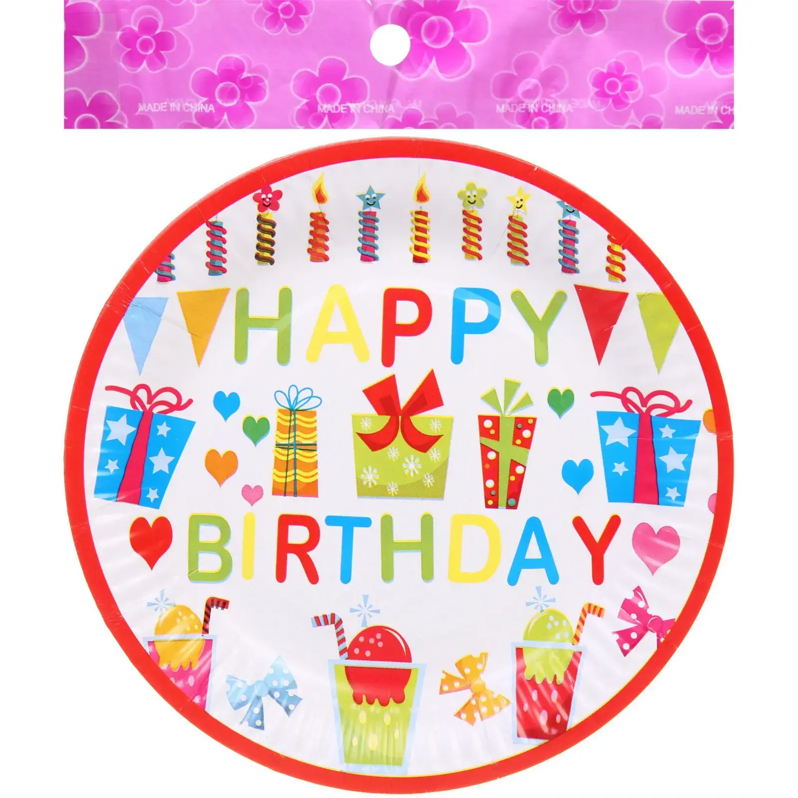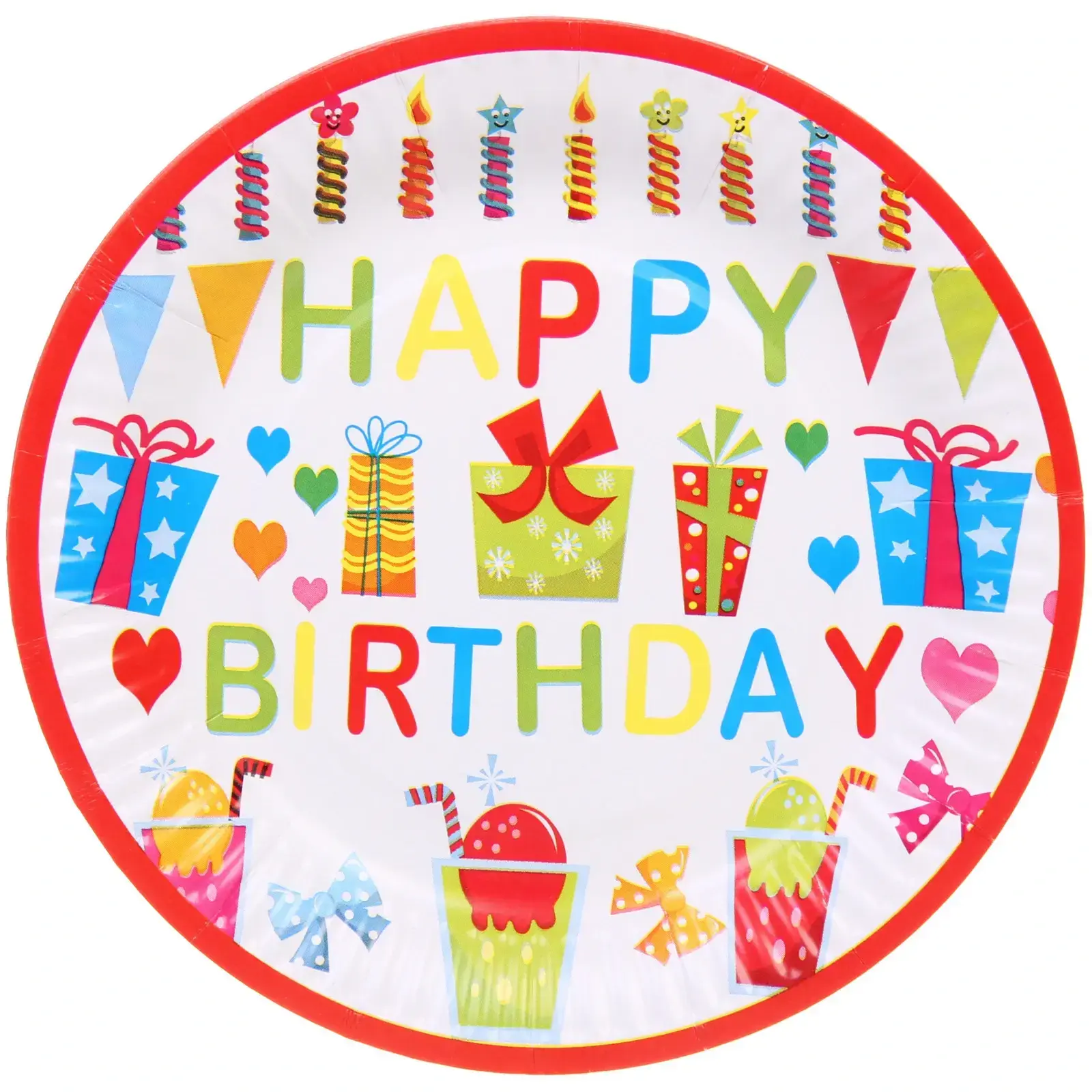 Создайте незабываемую атмосферу на вашем празднике с помощью нашей бумажной тарелки диаметром 18 см. Яркий дизайн с надписью "HAPPY BIRTHDAY" и изображениями подарков, свечей и флажков сделает ваш стол по-настоящему праздничным. Эти тарелки идеально подходят для дня рождения, детских праздников и других торжеств, добавляя веселья и радости в любое событие.