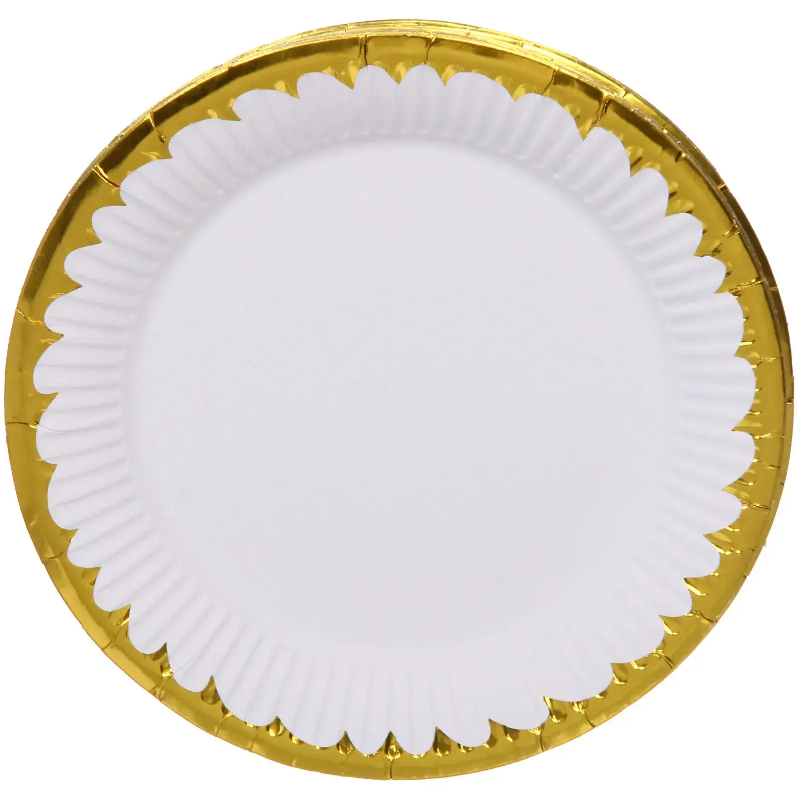 Создайте атмосферу уюта и стиля на вашем празднике с помощью бумажных тарелок «Праздничный день». Эти тарелки не только удобны в использовании, но и добавляют изысканности вашему столу благодаря золотому краю. Они идеально подходят для сервировки различных блюд, будь то закуски, основные блюда или десерты.