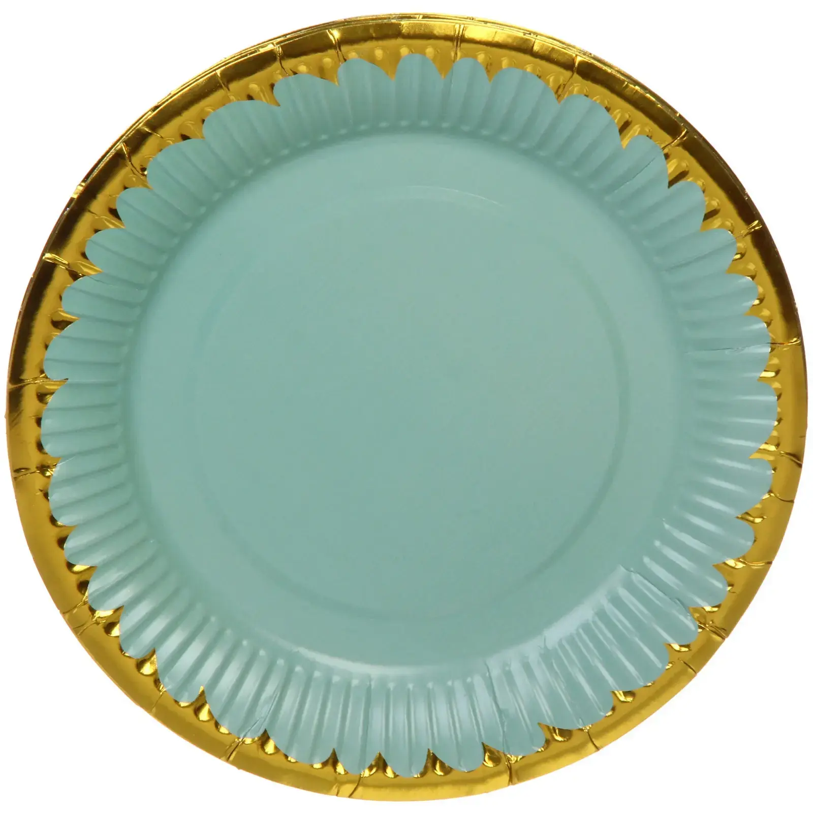 Выбирая нашу тарелку, вы получаете не только красивый, но и практичный продукт. Изготовленная из качественной бумаги, она устойчива к влаге и не деформируется при использовании. Изумрудный цвет и золотистая кайма придают ей элегантный вид, что делает её отличным выбором для любого праздника.