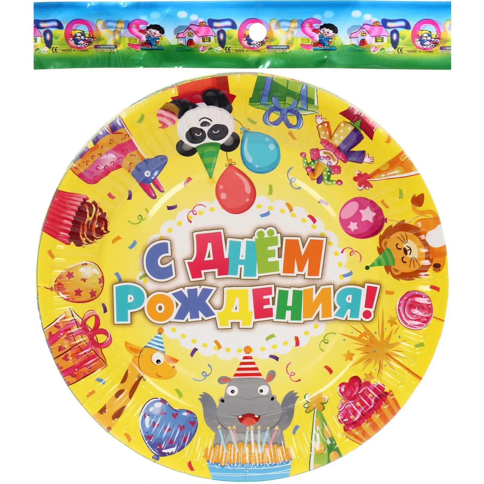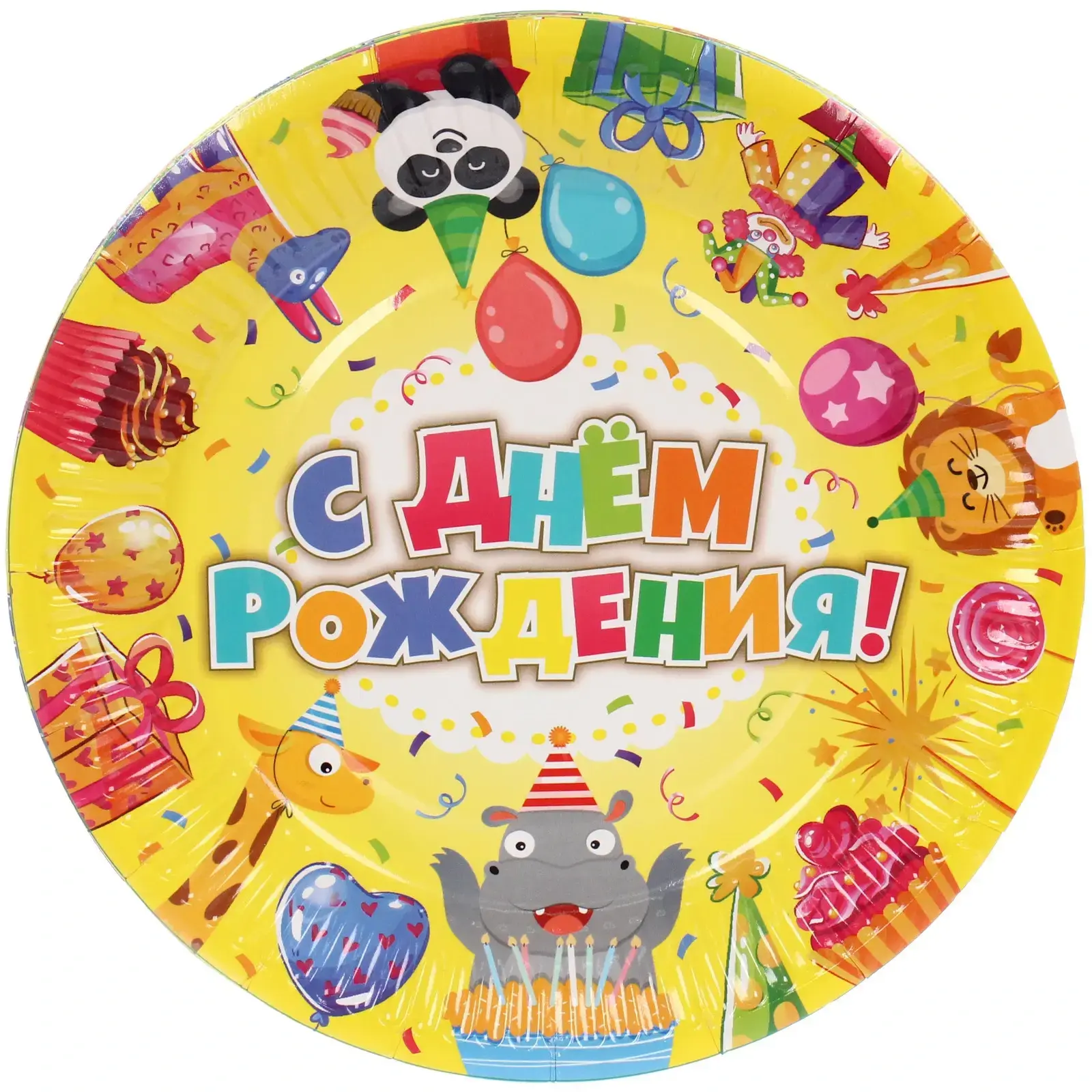 Тарелки бумажные 'С днем рождения! Зверюшки', 18см, набор 10шт